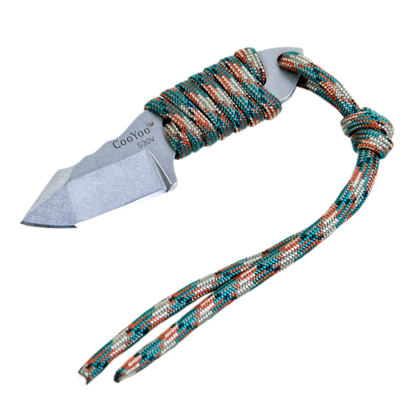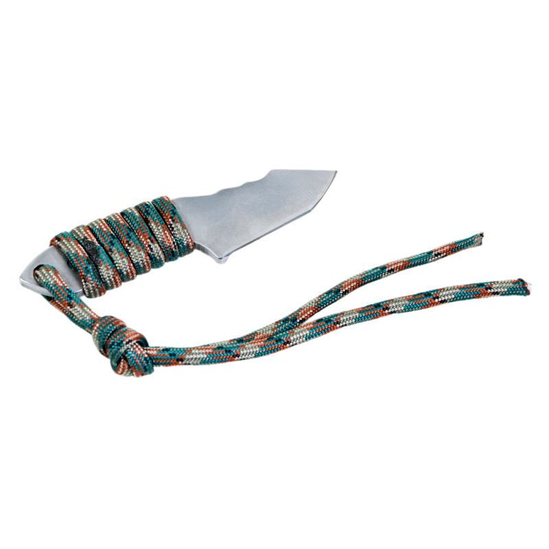 Нож изготовлен из высококачественной нержавеющей стали. Ручка обмотана паракордовым шнуром. В комплекте футляр из пластика с мягким паралоновым нутром. Внешние размеры ножа - 8,5 х 2,5 х 0,5 см. Цена:725 гр.