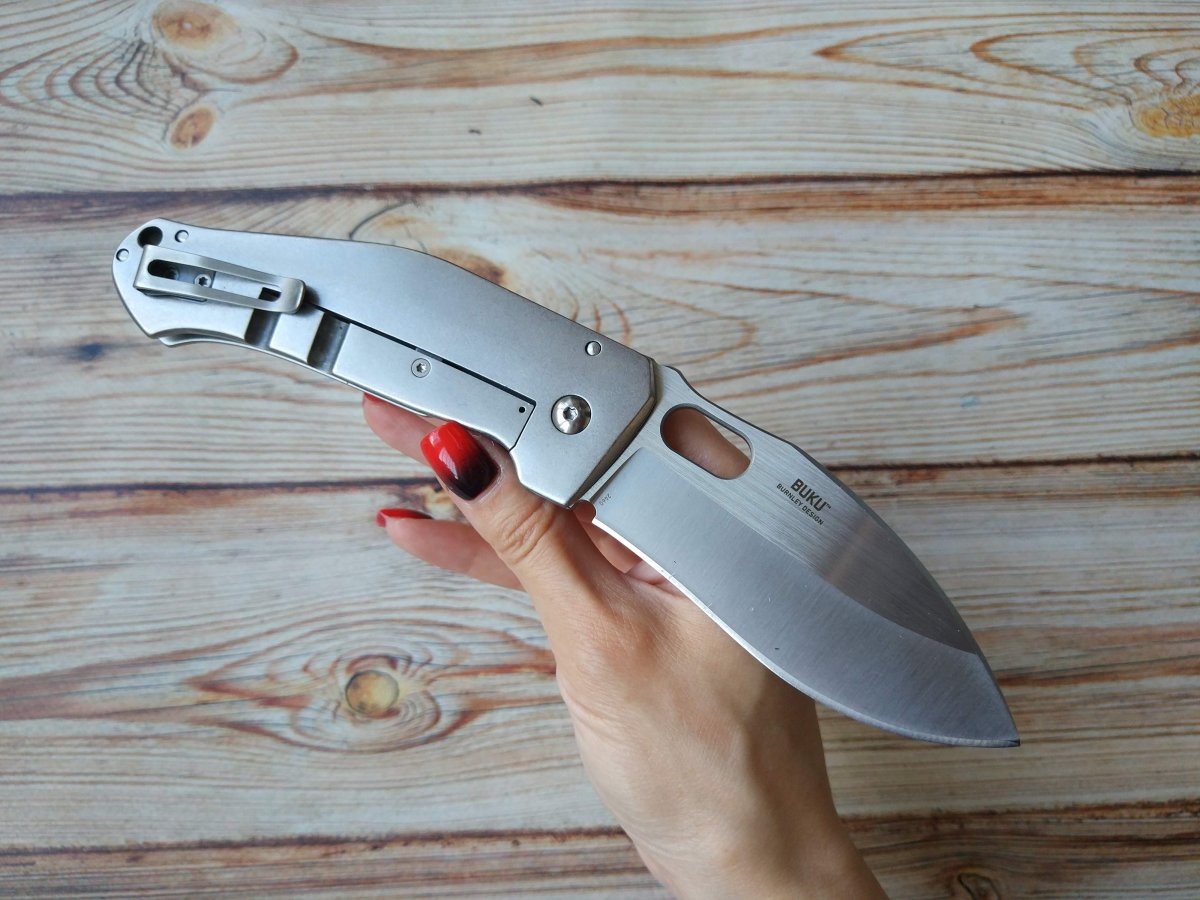 Предлагаю складной нож от компании Columbia River Knife and Tool® (CRKT®). Модель Buku™ Lucas Burnley Design (2460). Оригинал. Компания Columbia River Knife and Tool, думаю, в особом представлении не нуждается и известна любителям «остренького» по всему миру. Компанию выделяет постоянное сотрудничество с известными ножевыми разработчиками и дизайнерами, а так же весьма обширный (но при этом относительно доступный) ассортимент моделей. В 2016 году компанией была представлен нож Buku™, который был разработан в сотрудничестве с ножевым мастером и дизайнером Lucas Burnley. Складной, рабочий, брутальный, тяжёлый, нудист, кукри – это всё про эту модель . Клинок ножа выполнен из стали 8Cr13MoV, широко применяемой при производстве ножей среднего ценового сегмента. 8Cr13MoV это высокоуглеродистая средне хромистая коррозионностойкая сталь, содержащая в своём составе молибден и ванадий. Форма клинка Kukri style тип заточки «Plain», финиш - Satin. Клинок имеет немалую толщину в 3,66 мм и приятный вес, что позволяет использовать нож CRKT Buku как небольшой топорик. В то же время вогнутые спуски от середины клинка обеспечивают ножу уверенный и хороший рез. Рукоять ножа CRKT Buku выполнена целиком из стали. Обработка плашек стоунвош – отлично смотрится, скрывает коцки и царапки на радость владельцу. Рукоять хорошо заполняет руку, эргономична и в то же время проста – отсутствие декоративных элементов и украшательств положительно сказывается при длительной работе. Замок - простой и надежный Frame lock. Клипса имеет одно посадочное место, на кармане нож сидит осевым узлом вниз довольно глубоко. Темлячное отверстие так же присутствует. Ссылка модели на сайте производителя: https://www.crkt.com/buku.html Видео от производителя: Ещё парочка, для наглядности: Обзоры по этой модели в сети есть, желающие могут дополнительно поискать-посмотреть. Характеристики, заявленные производителем: Общая длина: 211,15 мм. Длина клинка: 95,25 мм. Толщина клинка: 3,66 мм. Тип клинка: Kukri Blade Style. Тип заточки: Plain. Механизм фиксации клинка: Frame lock. Механизм открытия: IKBS™ Ball Bearing Pivot System. Материал клинка: 8CR13MoV with a Satin finish (58-59 HRC). Материал накладок рукояти: Stainless Steel with a Stonewashed finish. Вес: 219 г. Клипса: съемная, 1 положение. Страна поставщик: США. Страна изготовления: Китай. Компания производитель: Columbia River Knife & Tool® (CRKT®). Дизайн и разработка: Lucas Burnley. Каталожный код модели: 2460. Упаковка: Фирменный блистер. Нет в наличии. Стоимость: грн. Резервы - в темке, вопросы, пожелания - в личку. Фото: В другие города отправляю Новой Почтой (оплата за доставку при получении, по тарифам перевозчика). Оплата на карту (Приват банк или Монобанк). Смотрите и другие мои темки о продаже: https://reibert.info/search/member?user_id=98289&content=thread