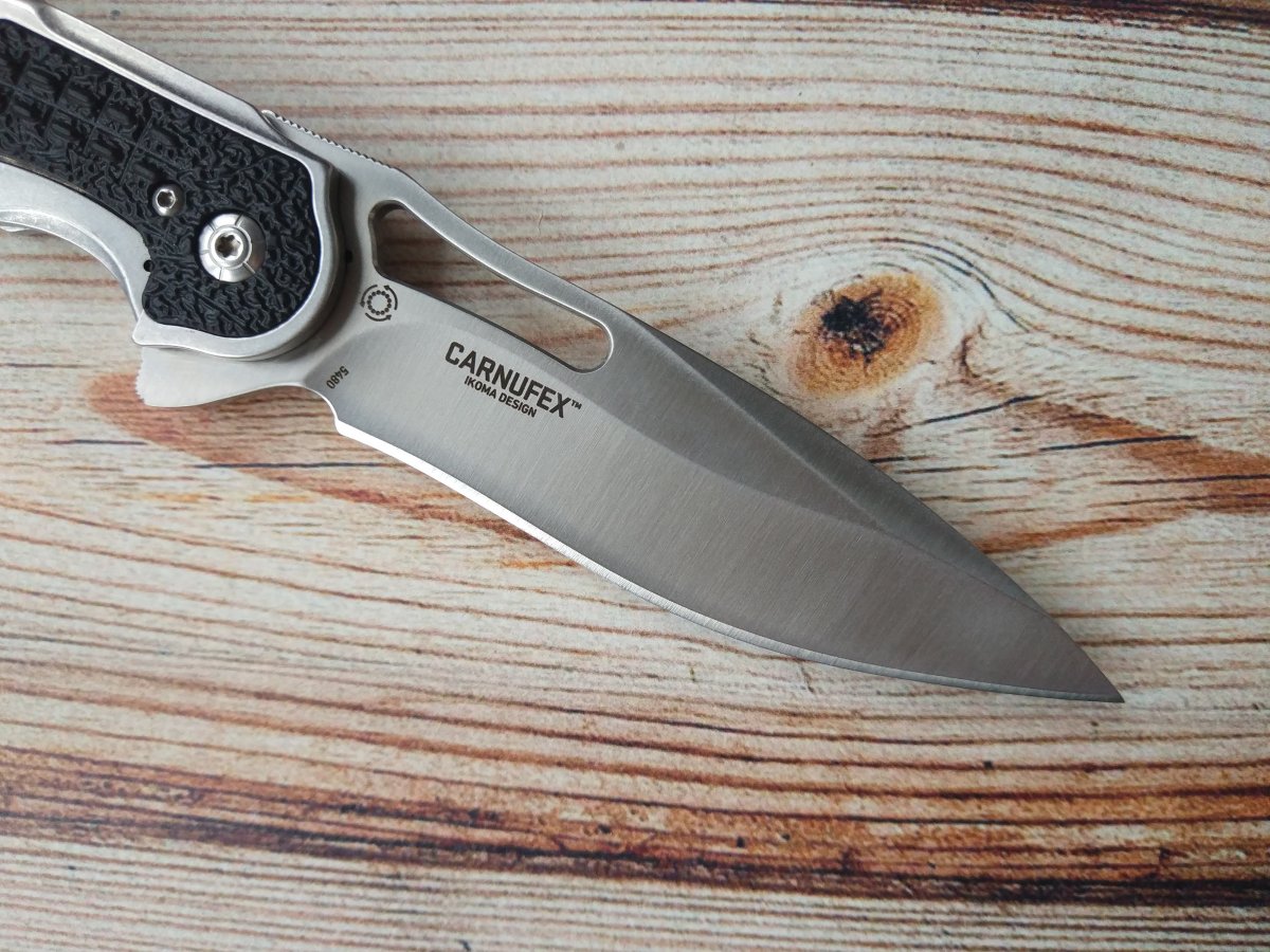 Предлагаю складной нож от компании Columbia River Knife and Tool® (CRKT®). Модель Carnufex™ Flavio Ikoma Design (5480). Оригинал. Компания Columbia River Knife and Tool, думаю, в особом представлении не нуждается и известна любителям «остренького» по всему миру. Компанию выделяет постоянное сотрудничество с известными ножевыми разработчиками и дизайнерами, а так же весьма обширный (но при этом относительно доступный) ассортимент моделей. В 2017 году компанией была представлена модель Carnufex™, ножи были разработаны в сотрудничестве с бразильским ножевым мастером и дизайнером Flavio Ikoma. Вдохновение для дизайна этой модели мастер черпал, изучая плотоядных динозавров (dinosaur predator), а само название «Carnufex» можно перевести с латыни как – мясник. То есть «на выходе» мы получили «карманную рептилию хищника» и действительно, глядя на этот нож сравнение с рептилией само приходит на ум. При проектировании ножа с необычной внешностью довольно сложно подогнать все элементы и детали друг к другу так, чтобы изделие получилось действительно функциональным и при этом цельным, и гармоничным. В случае с ножом Carnufex всё это, на мой взгляд, удалась в полной мере. Смотришь на него и понимаешь: «именно так и должен выглядеть клинок, полностью соответствуя образу и подходя к рукояти и клипса здесь именно той формы и на своём месте, а также обработка и материалы». CRKT Carnufex (5480) очень интересный и не маленький EDC флиппер с премиальным дизайном. Ссылка модели на сайте производителя: https://www.crkt.com/carnufex.html Видео от производителя: Ещё парочка, для наглядности: Обзоры по этой модели в сети есть, желающие могут дополнительно поискать-посмотреть. Характеристики, заявленные производителем: Общая длина: 230,20 мм. Длина клинка: 100,97 мм. Толщина клинка: 3,76 мм. Тип клинка: Modified Drop Point. Тип заточки: Plain. Механизм фиксации клинка: Frame Lock. Механизм открытия: Flipper, KBS™ Ball Bearing Pivot System. Материал клинка: 8CR13MoV with a Satin finish (58-59 HRC). Материал рукояти: Stainless Steel Stonewash Handle with Glass Reinforced Nylon Inlay. Вес: 165 г. Клипса: Съемная, 1 положение. Страна поставщик: США. Страна изготовления: Китай. Компания производитель: Columbia River Knife & Tool® (CRKT®). Дизайн и разработка: Flavio Ikoma. Название модели: Carnufex. Каталожный код модели: 5480. Упаковка: Фирменная коробка. Нет в наличии. Стоимость: грн. Резервы - в темке, вопросы, пожелания - в личку. Фото: В другие города отправляю Новой Почтой или Джастин (оплата за доставку при получении, по тарифам перевозчика). Оплата на карту (Приват банк или Монобанк). Смотрите и другие мои темки о продаже: https://reibert.info/search/member?user_id=98289&content=thread