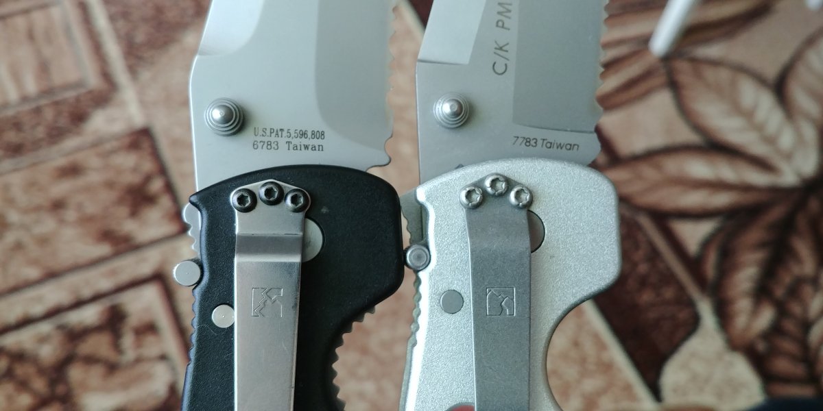 На оригиналах эмблема CRKT на клипсе и надпись Taiwan на клинке. На фото обычная модель и профешинал.