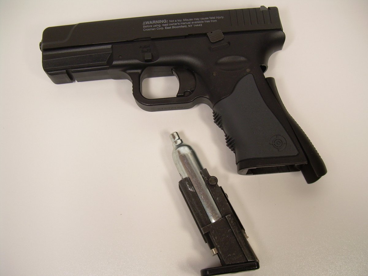 Продам немецкий газобалонный пистолет Crosman T4. Калибр 4.5 мм, 8 зарядный. Состояние очень хорошее, ничего не травит, вставил баллон - встал даже без пшика, стреляет, барабанчик прокручивает. Интересная система замены баллона - не нужно ничего крутить, вставляется магазин с баллоном снизу и зажимается рычагом сзади рукоятки. Кому интересно - обзоры есть в интернете. В комплекте писолет с магазином и барабанчиком, инструкция на немецком.