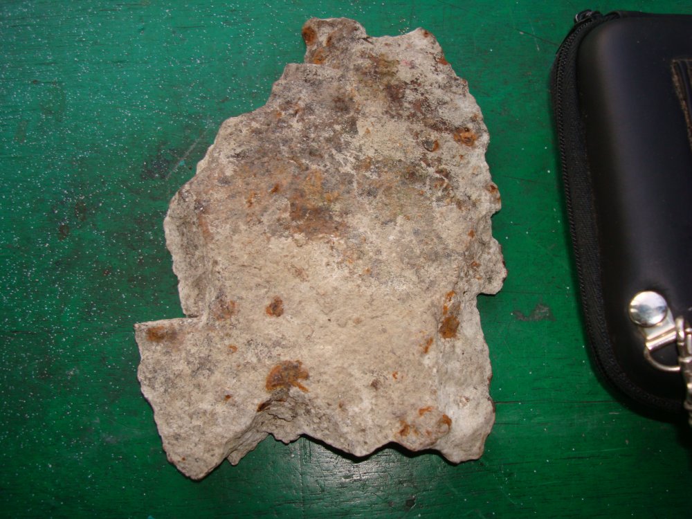 Зравствуйте! На земле ,под листвой, нашелся такой осколок. Смущает цвет.Следа на пальце нет. Кто встречал подобное? С ув.