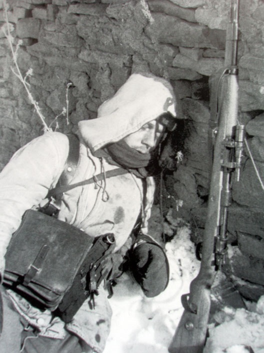 Расположение людей и их позы свидетельствует - что ситуация совершенно не напряженная. Один вообще спиной стоит к воображаемому "противнику"... То есть с той стороны куда целится "снайпер" - угрозы совершенно нет. PS Тут недавно довелось поснайперить со Светой... Так вот пока ползал по пересеченке - проклял к чертовой матери - планшет, бинокль и лопату... Лопата постоянно наровила черенком попасть в сапог, бинокль собирал все ветки, периодически удараясь о винтовку, а планшет задирался вверх перекручивая всю портупею... Если посмотреть фото снайперов в более-менее условиях приближеных к передовой - то как правило у них минимальный обвес: пара подсумков, ремень, иногда игрик и фляга. Возможен еще чехол для прицела. Лопата, штык, сухарка, газбаки и т.п... за ненадобностью видимо оставлялись (хотя надо посмотреть снайперские книжки - выдавали им их вообще или нет).