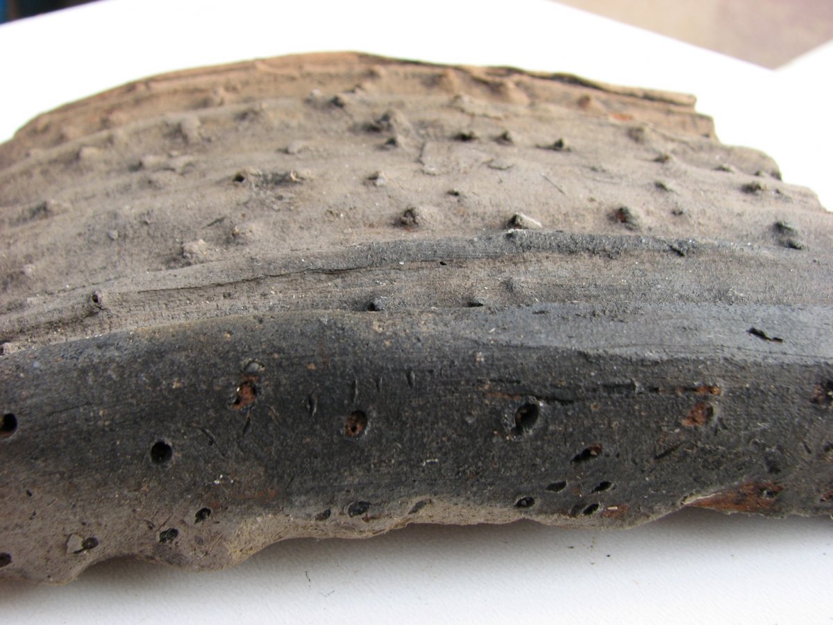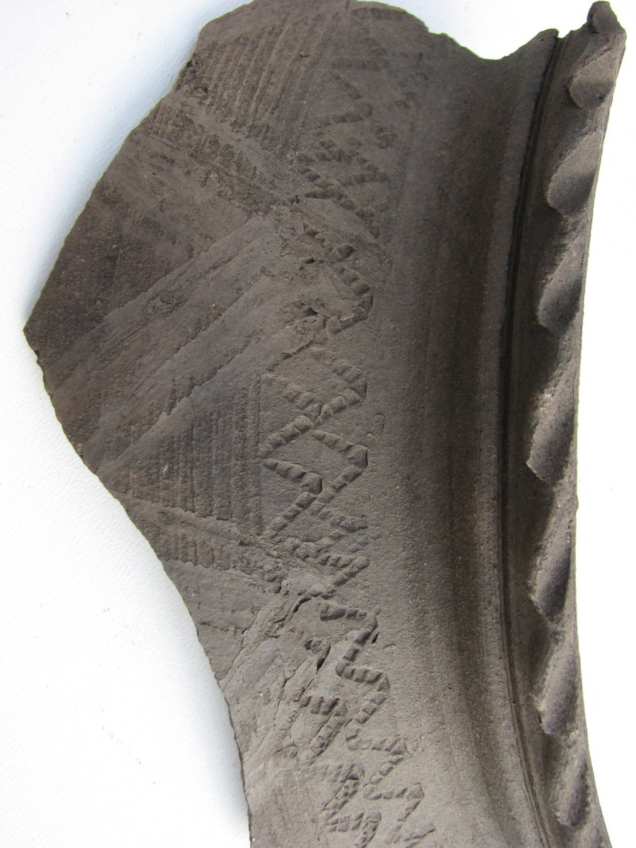 Здравствуйте. Чернолощеная керамика 17-18 века изготавливалась способом задымления, поэтому имеет такой чёрный цвет. С уважением.Юрий.