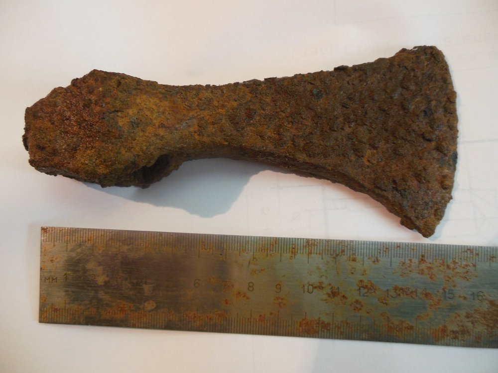 Доброго дня.Нашелся недалеко от Киева такой топорик.По весу 500г.Прошу определить чьих так сказать.С уважением.