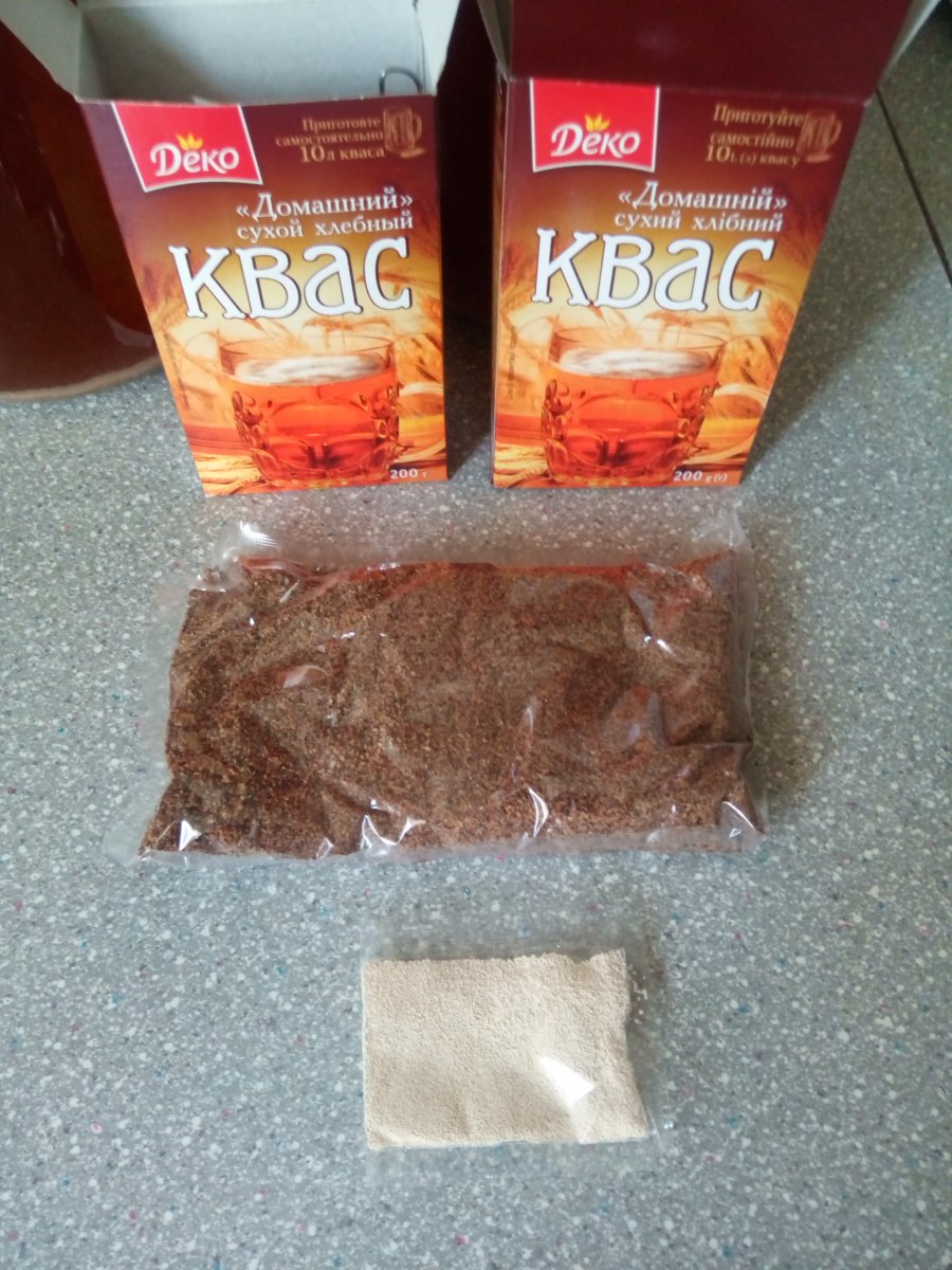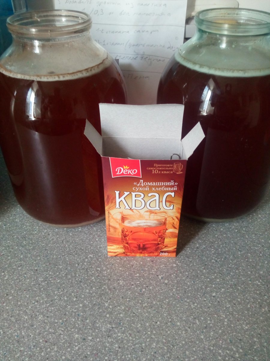 Полностью разобрался с концентратом,зарядил новую партию,теперь делюсь опытом. Покупаю вот такой пакет на 10 литров кваса.Стоит 12 грн. Смог найти только в Ашане на Петровке Внутри 2 пакета,большой с солодом ,малый с дрожжами. Как все делать. Большой пакет залить кипятком 10 литров Дать настоятся 2 часа Обязательно отцедить(Не экономьте эту бодягу из нее говно получается,все испытал на себе) Добавить дрожжи из маленького пакета. Добавить сахар(я беру 3 столовых ложки на 3л банку,ну это уже по вкусу подбирайте) когда я бахнул 2 стакана сахара на 3 литра вышла прикольная бражка.) Оставьте в теплом месте пока не появится пена,вот такая.(появится через 10-12 часов.) Теперь обязательно поставьте в холодильник на ночь Все готово! Почему мне это нравится. 1 не надо цыркаться с хлебом. Его не надо резать,не надо жарить,никто не говорит сколько надо этих сухарей. страшно смотреть на размокший забродивший хлеб. Не понятно сколько его мурыжить пока он не забродит. и есть еще какие то моменты о которых я забыл. А эта шняга готовится быстро без заморочек и себестоимость ее 1,2 грн за литр. Ну это без сахара. Пользуйтесь!
