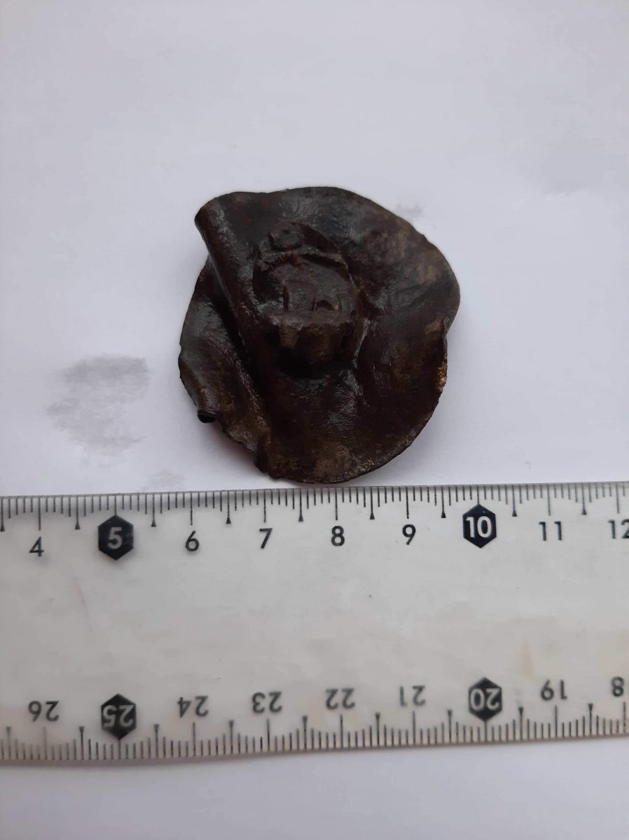 Добрый день. На копе попался такой предмет. Похож на гнутую монету или жетон. Подскажите что это было при жизни?