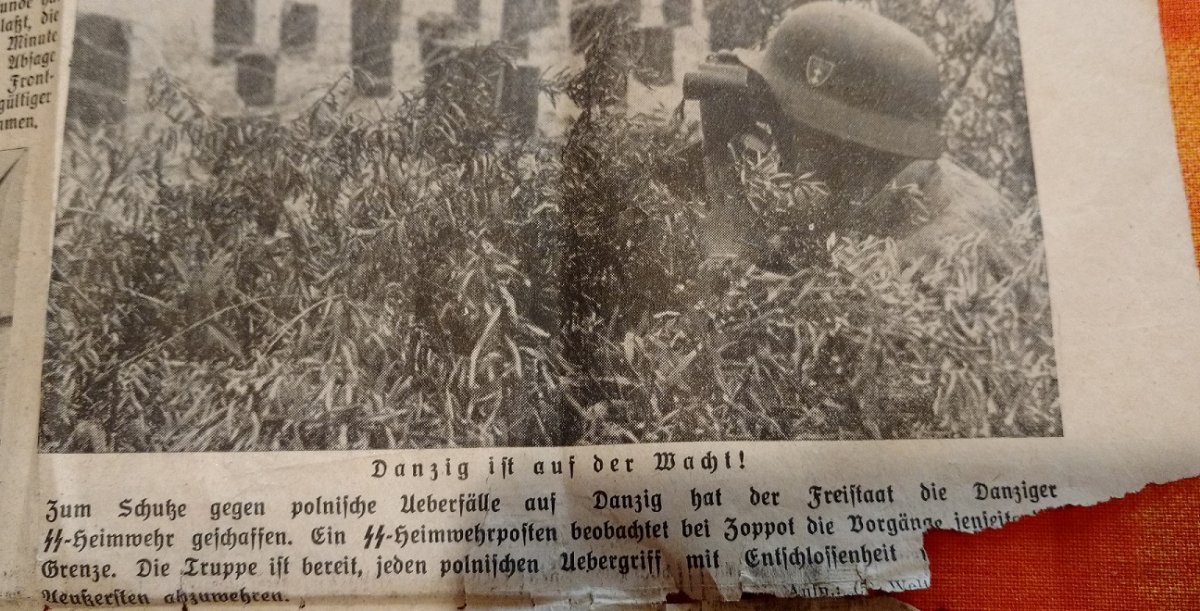 Нацистская пропагандистская картина показывает дежурного охранника Данцига СС на границе между Сопотом, Польшей и Свободным городом Данциг, который принадлежал Третьему Рейху, в августе 1939 года https://www.alamy.com/stock-photo-t...anzig-ss-home-guard-man-on-duty-74252761.html