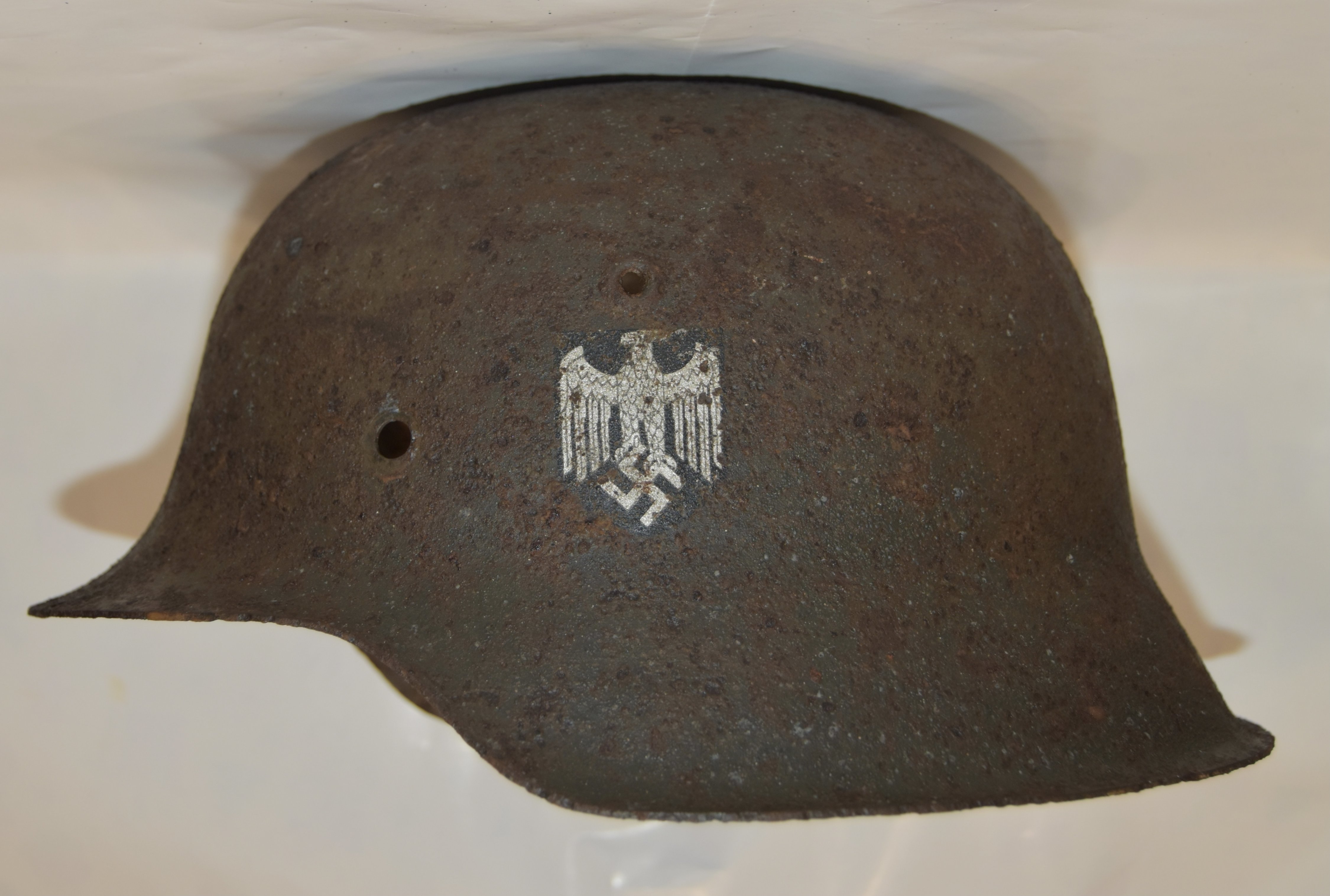 Приветствую ,на оценку для по следующем продажи такая декальная М-42 / размер 66 (67,5). В целом хороше коллекционное состояние отличная родная декаль, из минусов две трещины и сантиметровый выбитый фрагмент на лобной части.