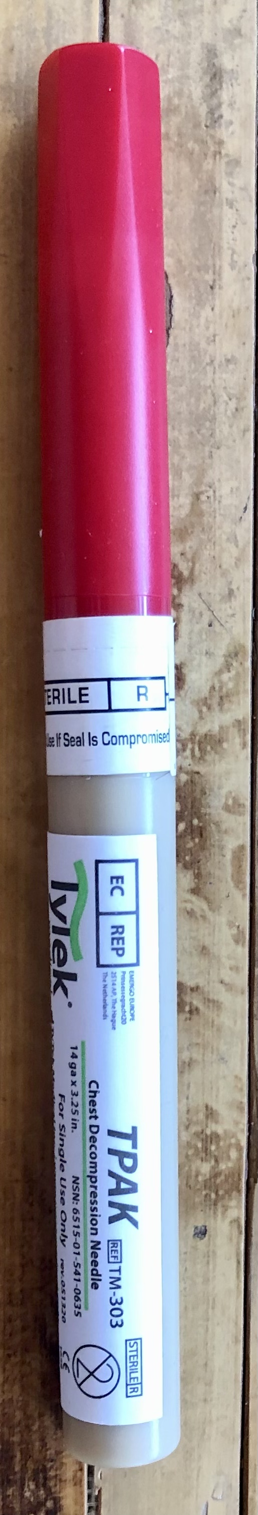 Декомпрессионная игла TyTek специально создана для оказания первой помощи при напряженном пневмоторакс на догоспитальном этапе. Игла декомпрессионная TyTek поставляется в специальном компактном футляре, который благодаря своей конструкции не только удобен в транспортировке и хранении, но также обеспечивает стерильность. Внутри пенала находится игла и катетер, длина которых 8,25 см, что соответствует рекомендациям международного комитета ТССС для использования на поле боя. Длина иглы и универсальность конструкции позволяют применять иглу декомпрессионную TyTek для взрослых пострадавших с разными типами телосложения. После введения иглы с катетером сама игла извлекается, оставляя в плевральной полости катетер. В свою очередь, катетер имеет открытый вход, позволяя иммобилизовать его в грудной клетке, а также контролировать ход выполнения манипуляции. Применение: Применять декомпрессионную иглу могут только лица с медицинским образованием или прошедшие специализированное обучение! Неправильное использование может привести к травмам и ухудшению состояния пострадавшего! Производство США. Цена 500 грн