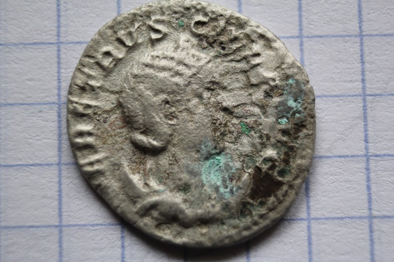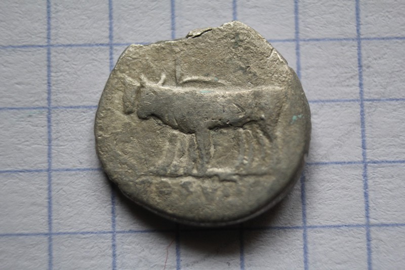 1. Гривенник Гереннии Этрусциллы, жены Траяна Деция, с Пудицитией на троне, держащей скипетр и закрывающей лицо вуалью. 250 от Р. Х. 2. Гривенник Веспасиана с парой быков. Кажется, восьмой консулат (у него это частый мотив, был и в другие консулаты), значит, 77 - 78 гг. от Р. Х. Жаль, что покоцанный. К Флавиям испытываю непонятную слабость.