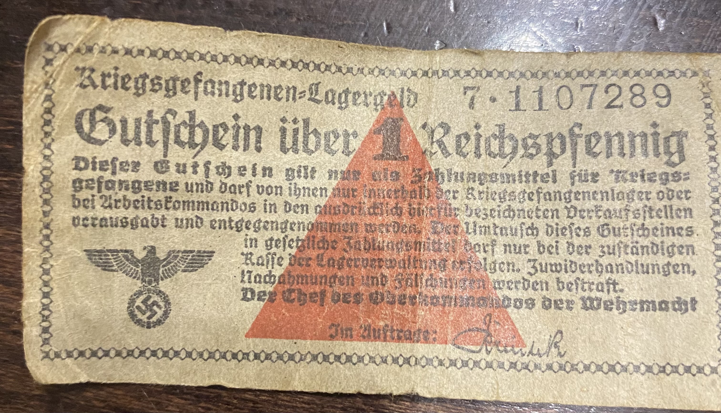 Да, лагерные деньги. Это купон, заменяющий 1 рейхспфенниг и имеющий хождение только на территории лагеря для военнопленных.