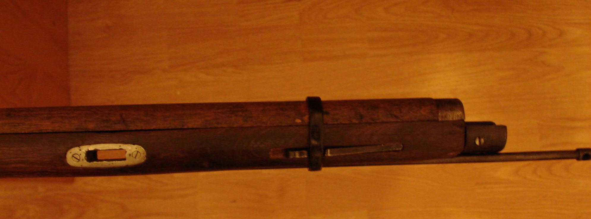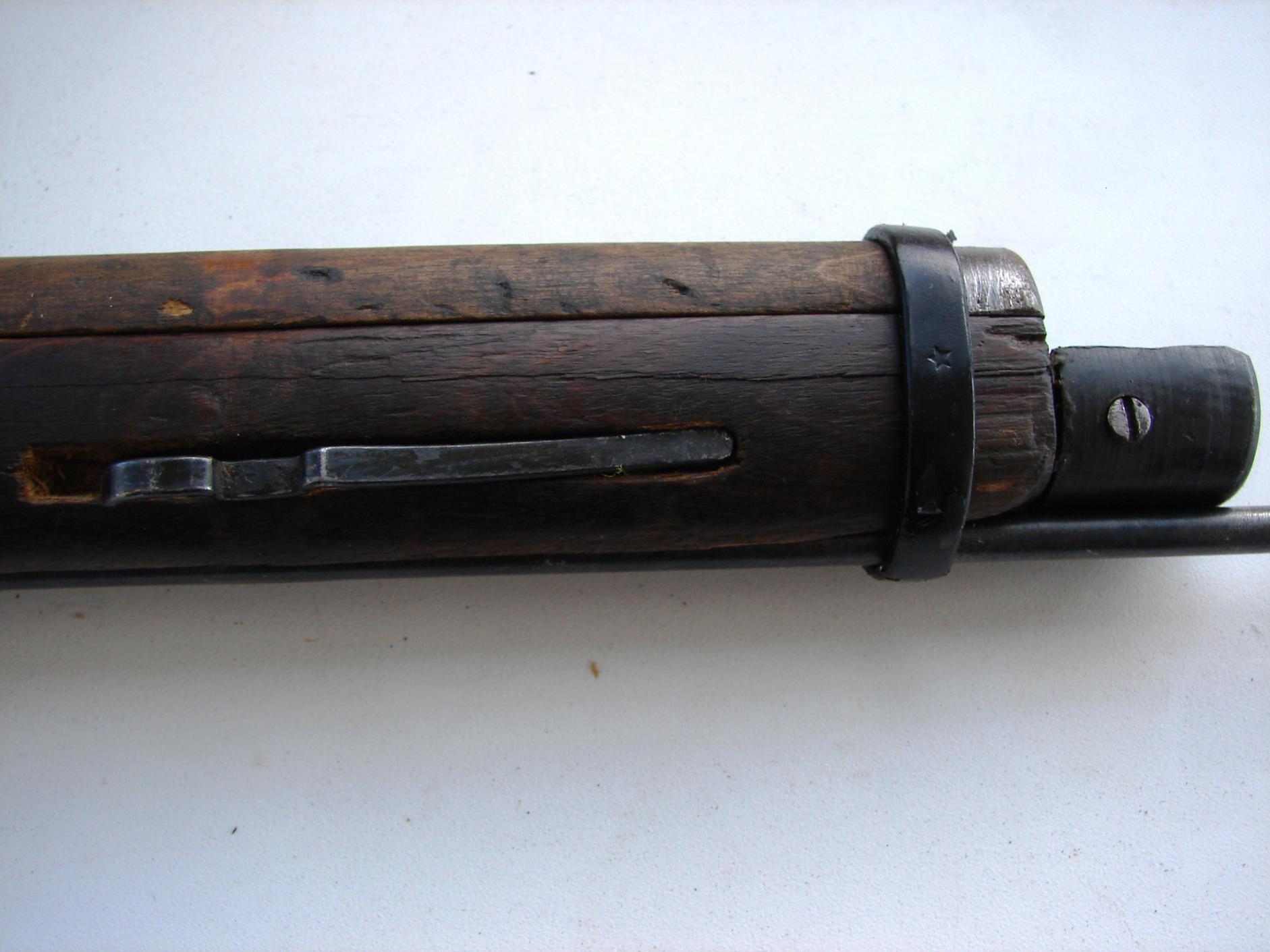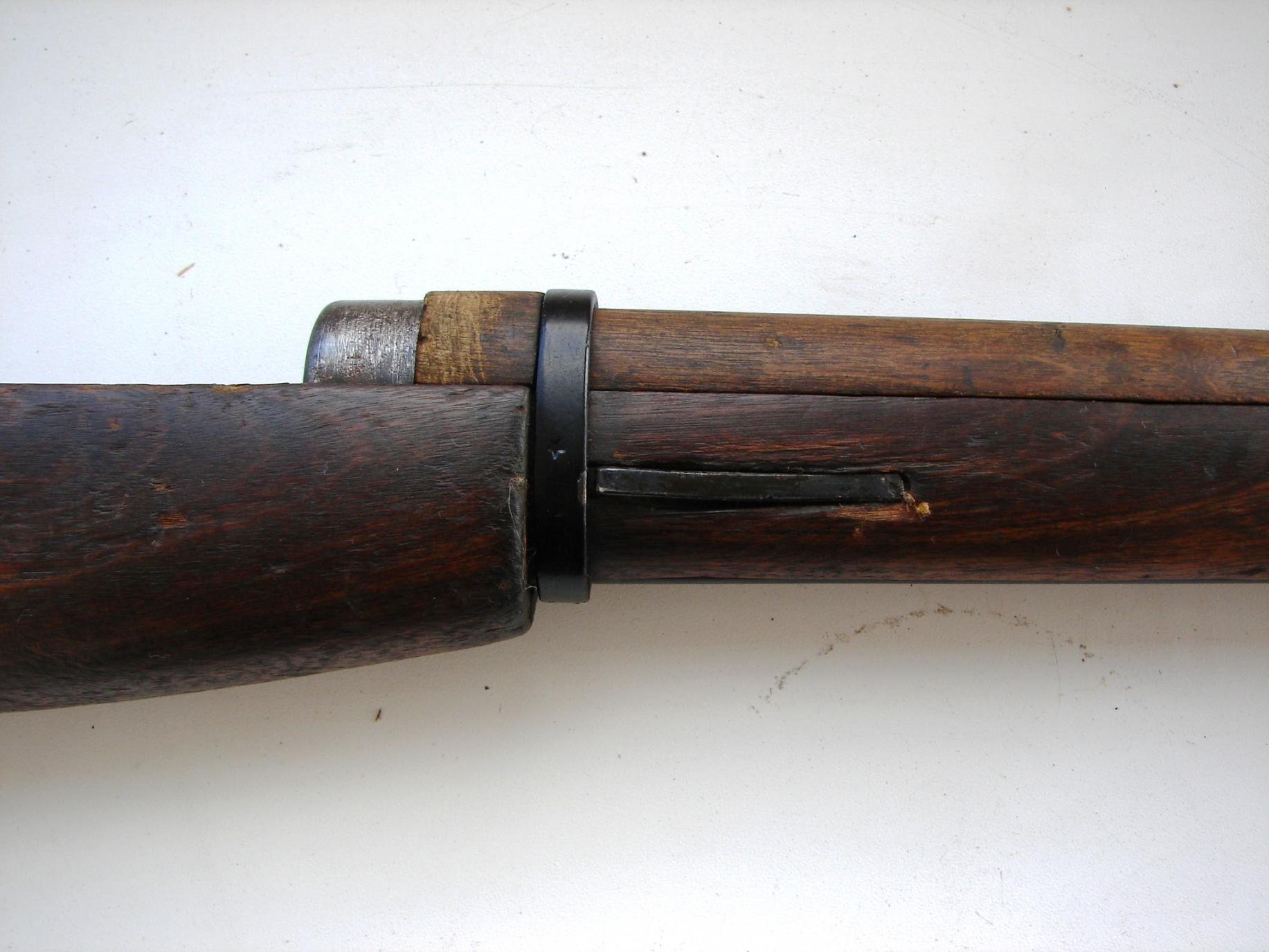 Еще появились вопросы в личку насчет того, защёлкивается ли переднее ложевое кольцо в пружине. Защёлкивается, см. фото. Дерево раннее, шомпольный упор квадратного сечения, а не плоский поздняковый: http://7.62x54r.net/MosinID/rodnut001c.JPG http://7.62x54r.net/MosinID/MosinFeatures01.htm
