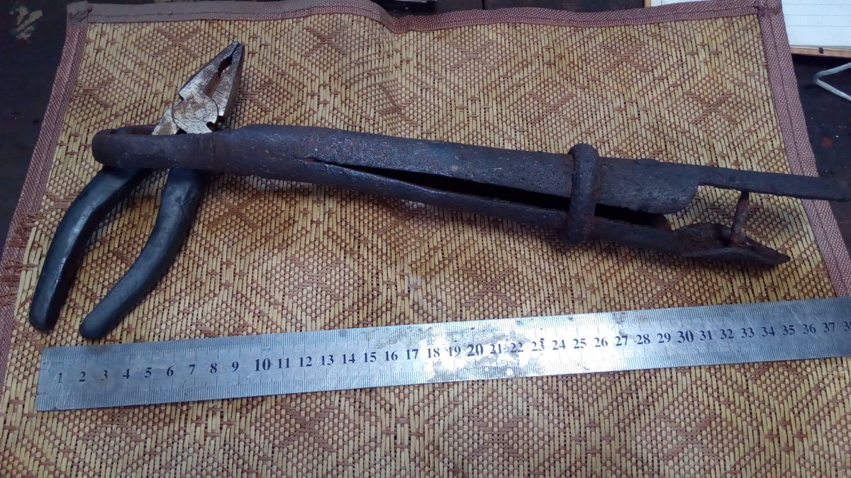 А мені нагадує деталь кріплення боковин парокінного воза...:confused:Здається ця деревляна кривуля з металевим наконечником у нашому регіоні називається "ливч".