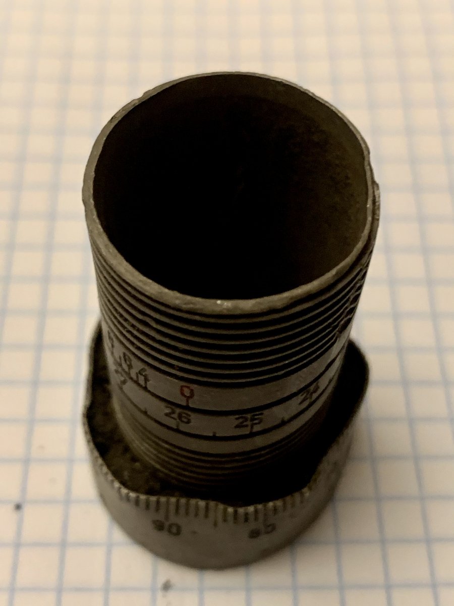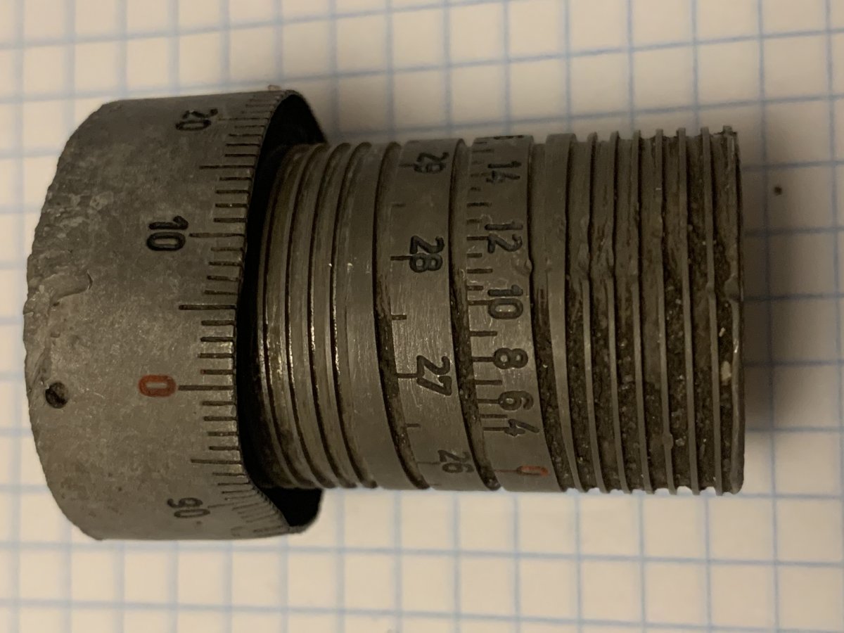 Доброго вечора, товариство! На полі, де бігали вермахтівці та галичани-дивізійники («Бродівський котел»), підняв таку деталь з різьбою, яка має цифри і, як я розумію, слугувала для якихось замірів. Схожа на лімб, але не впевнений...