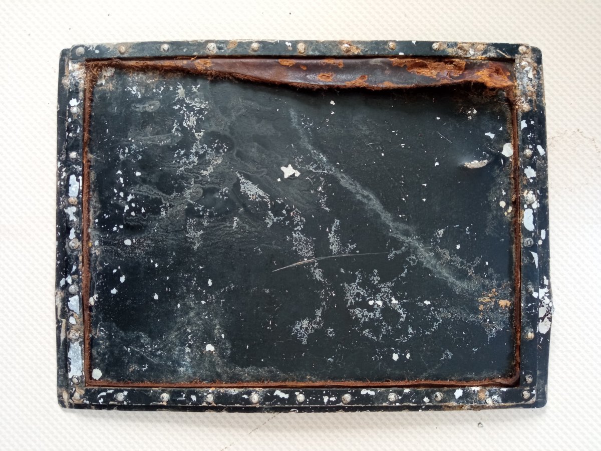 Здравствуйте, подскажите по детальке ,что может быть? Найдена на немецких позициях,размер 24.5\18.3см с одной стороны видны остатки кожи, материал алюминий.