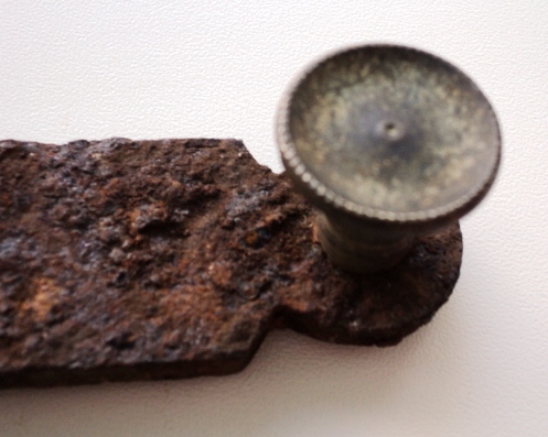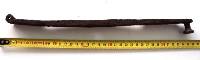 Выкопал такую деталь. Железо толстое. На конце ручка латунная с насечкой. Что это такое?
