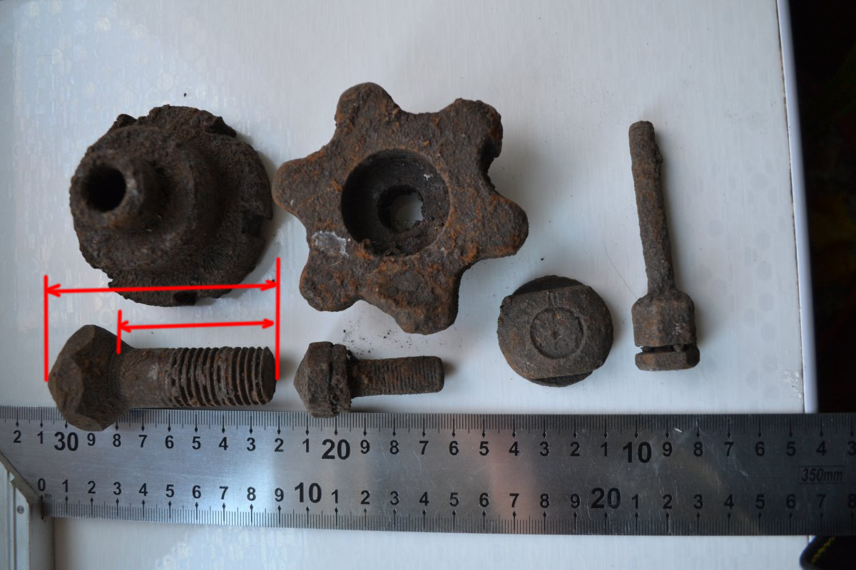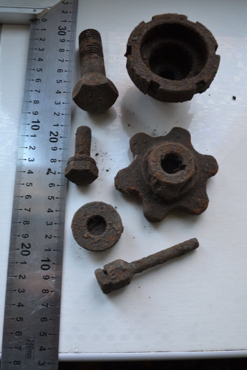 Добрый день!Подскажите с чего могут быть детали.Найдены в одном месте.Болты похоже как с танка. С уважением.