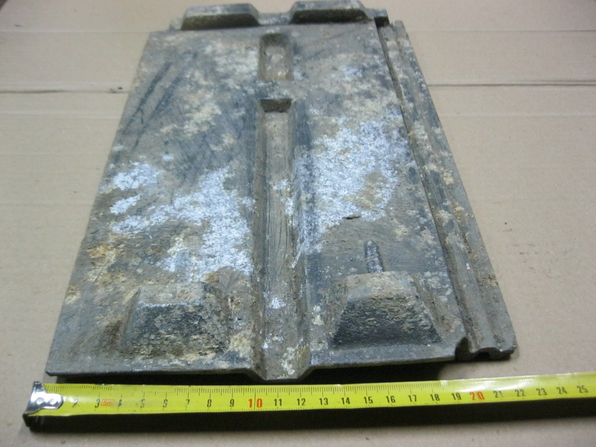 Доброго дня. Прошу помочь определить две детали, найдены по ВМВ. Первая, материал силумин или цинк (не знаю) толщина 4мм.