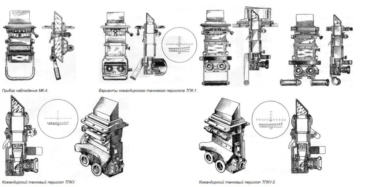 Привет. Бинокулярные советские танковые перископы, насколько я знаю, стали распространены после войны. В башенке командира Т-62, например