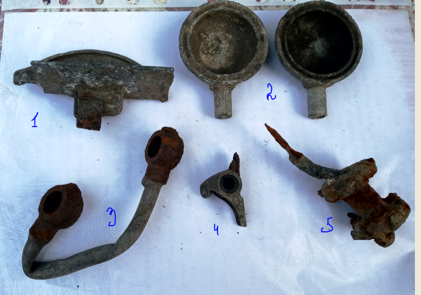 Мої вітання . По фото 1 певно з воза кінного 2-3 -чомусь мені такі донця попадались лише по пантері, гільзи т-4, штуга .3 і тигра зберігають хоч форму, а по пантері лише знаходив таке, заміряйте і Вам певно підкажуть. 4 частина переноски 105мм. Зліва клин для коління колод 5 ручка кльопана совок 6 мотига- залишки(сапа.........) 7- зі сцепки борін СССР