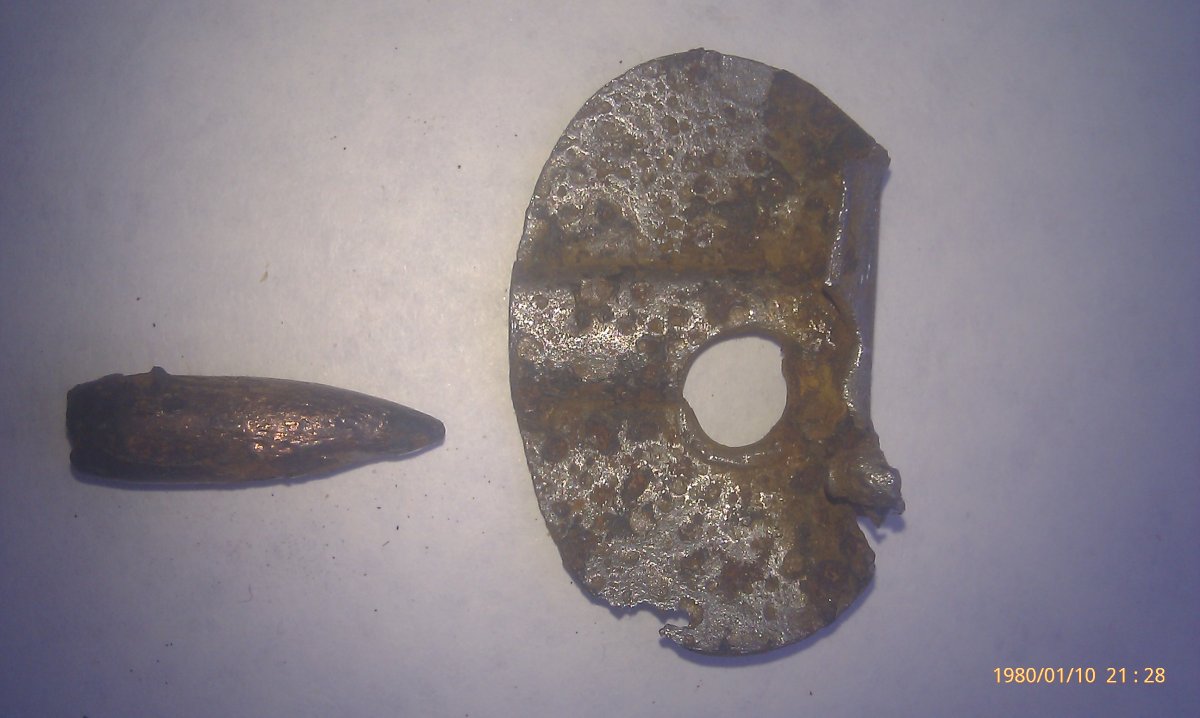Прохання підказати що це за бляшка а в ній куля.знайшов після дощу на стежці у лісі.Дякую. IMAG0070.jpg IMAG0071.jpg IMAG0072.jpg IMAG0073.jpg IMAG0074.jpg