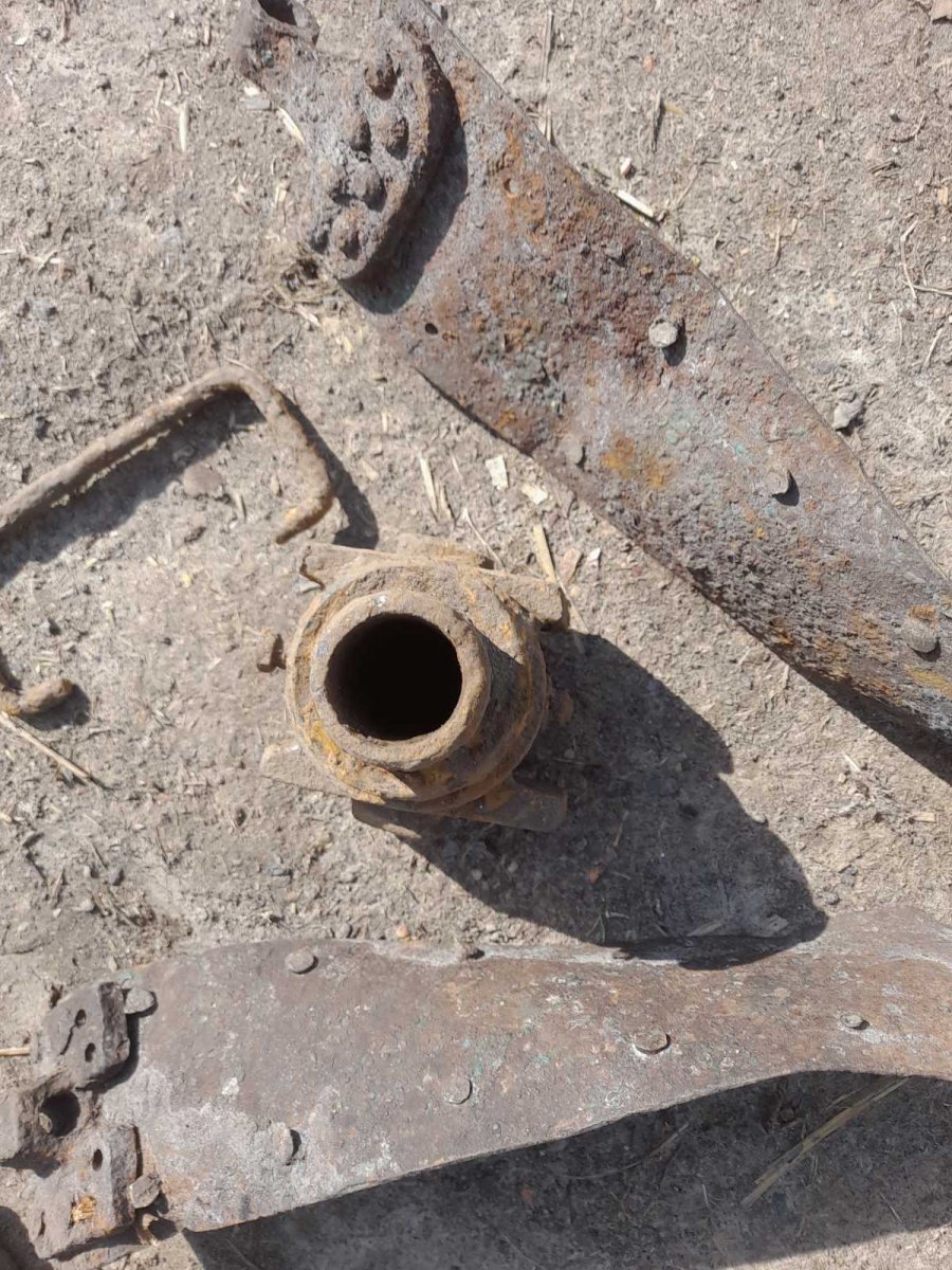 Доброго вечора! Завчасно перепрошую за якість фото. Скидав колега, а йому недавно 71 рік стукнув) Розміри тормозної лєнти 70 на 9см (сама основа, без петель) Була ще німецька протитанкова міна, ручку він зняв (є на фото), решту прикопав.