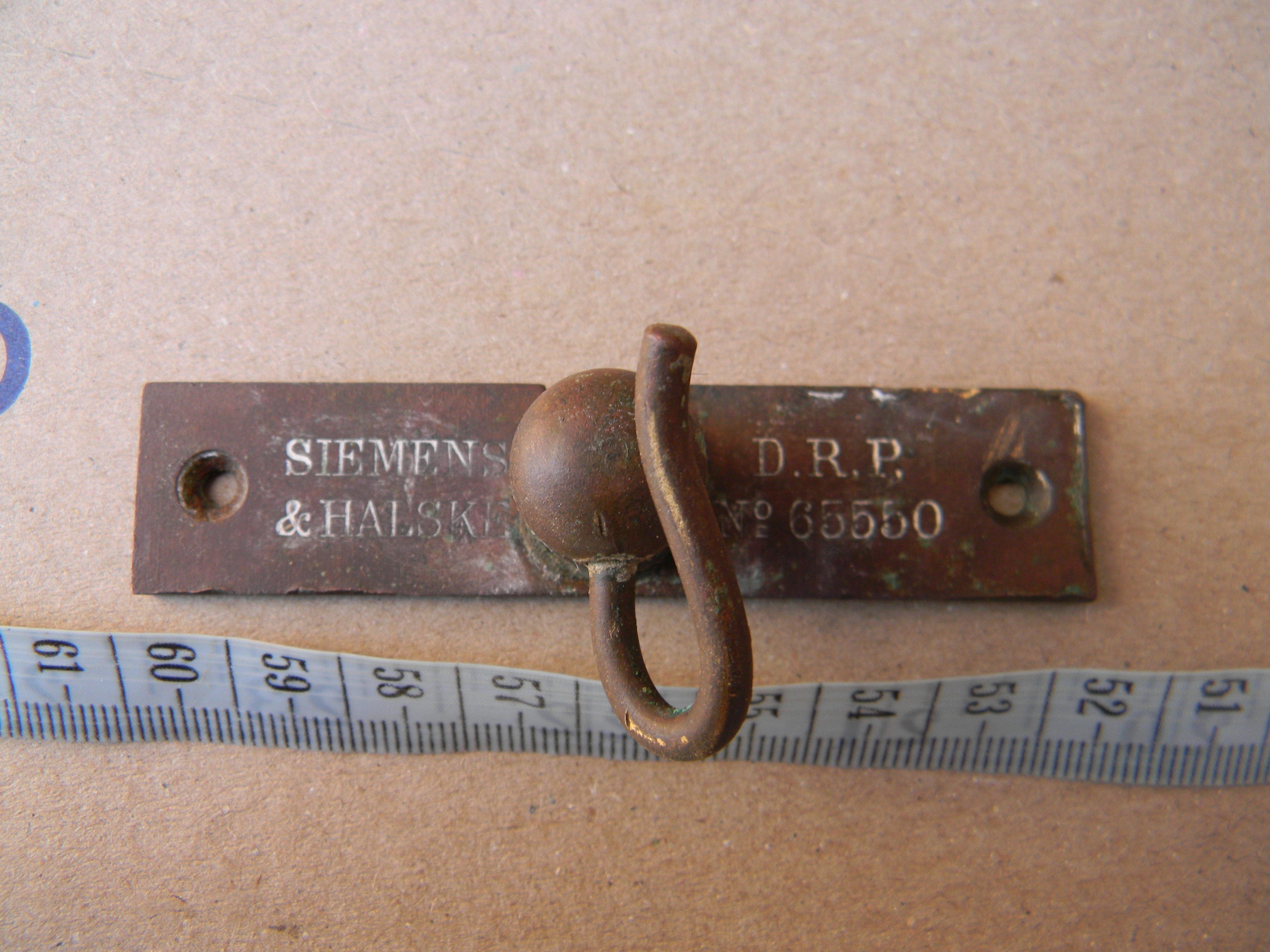 Табличка з гачком, дуже схоже, що від подібного телефонного апарату виробництва Siemens & Halske.