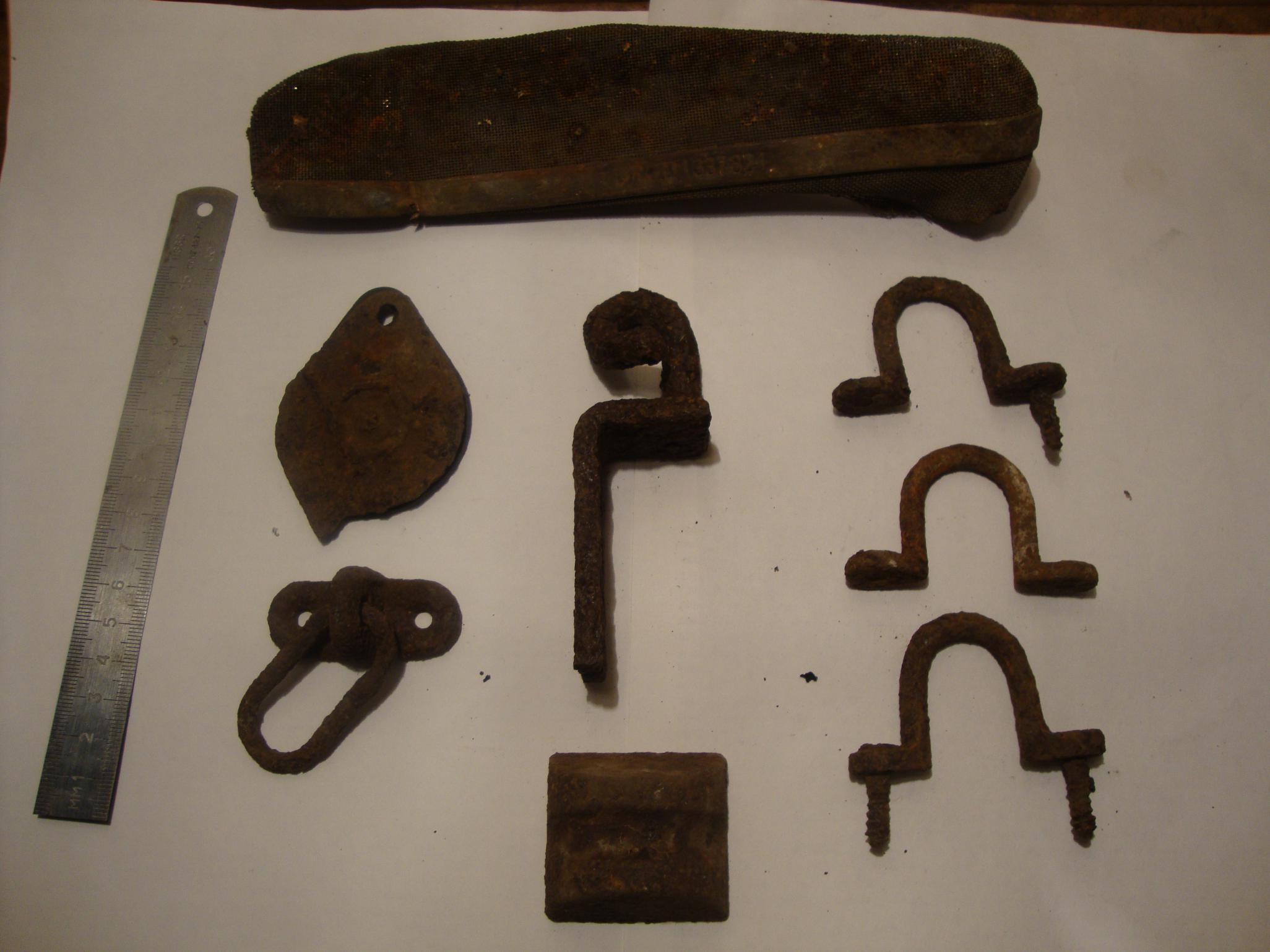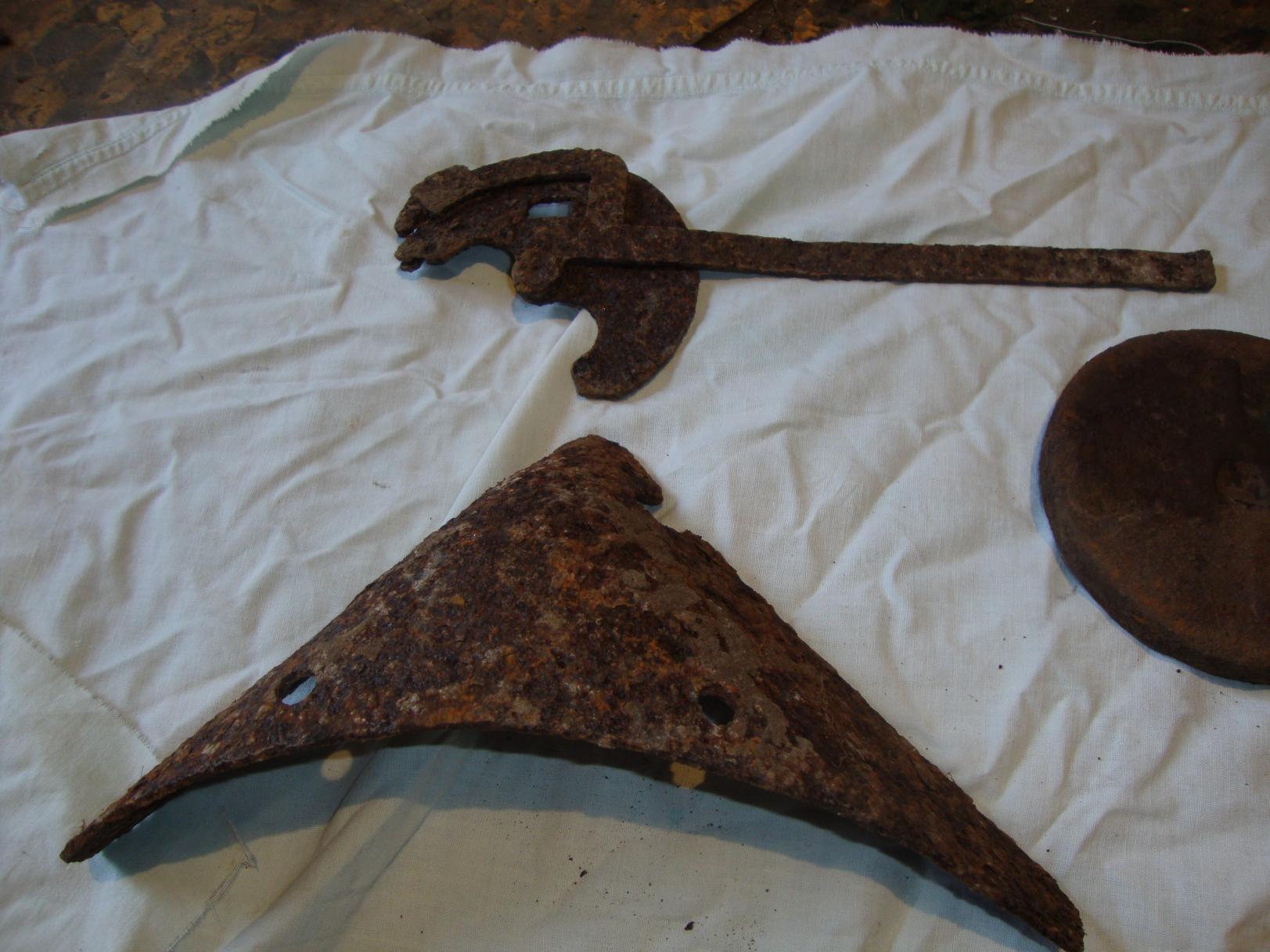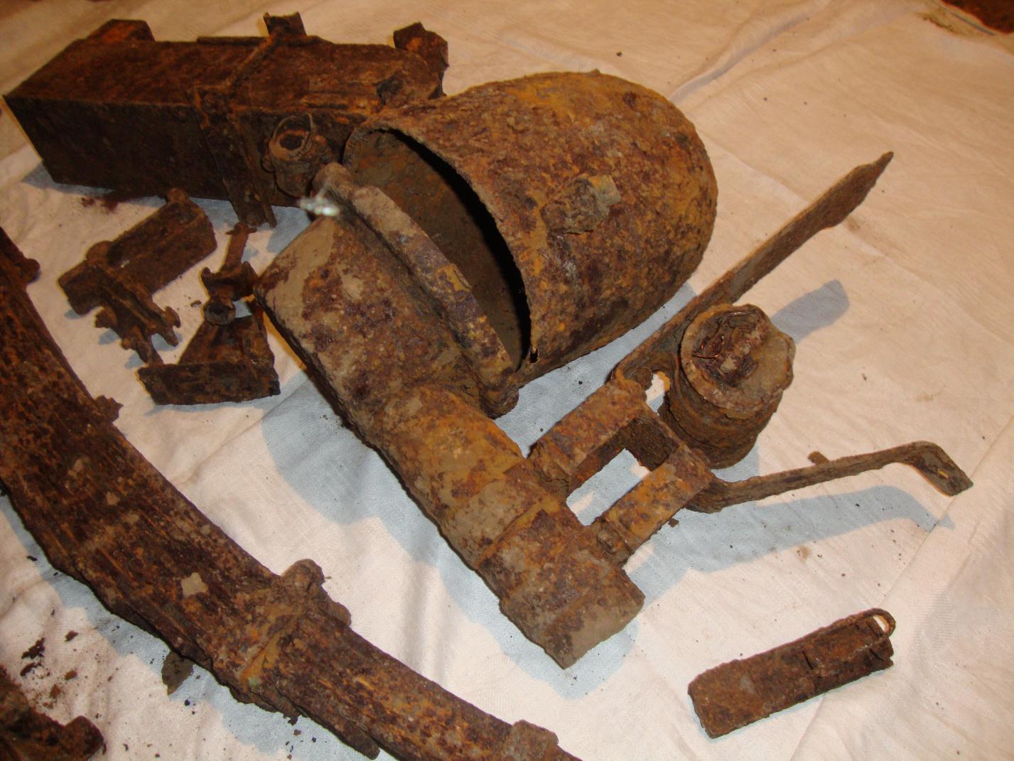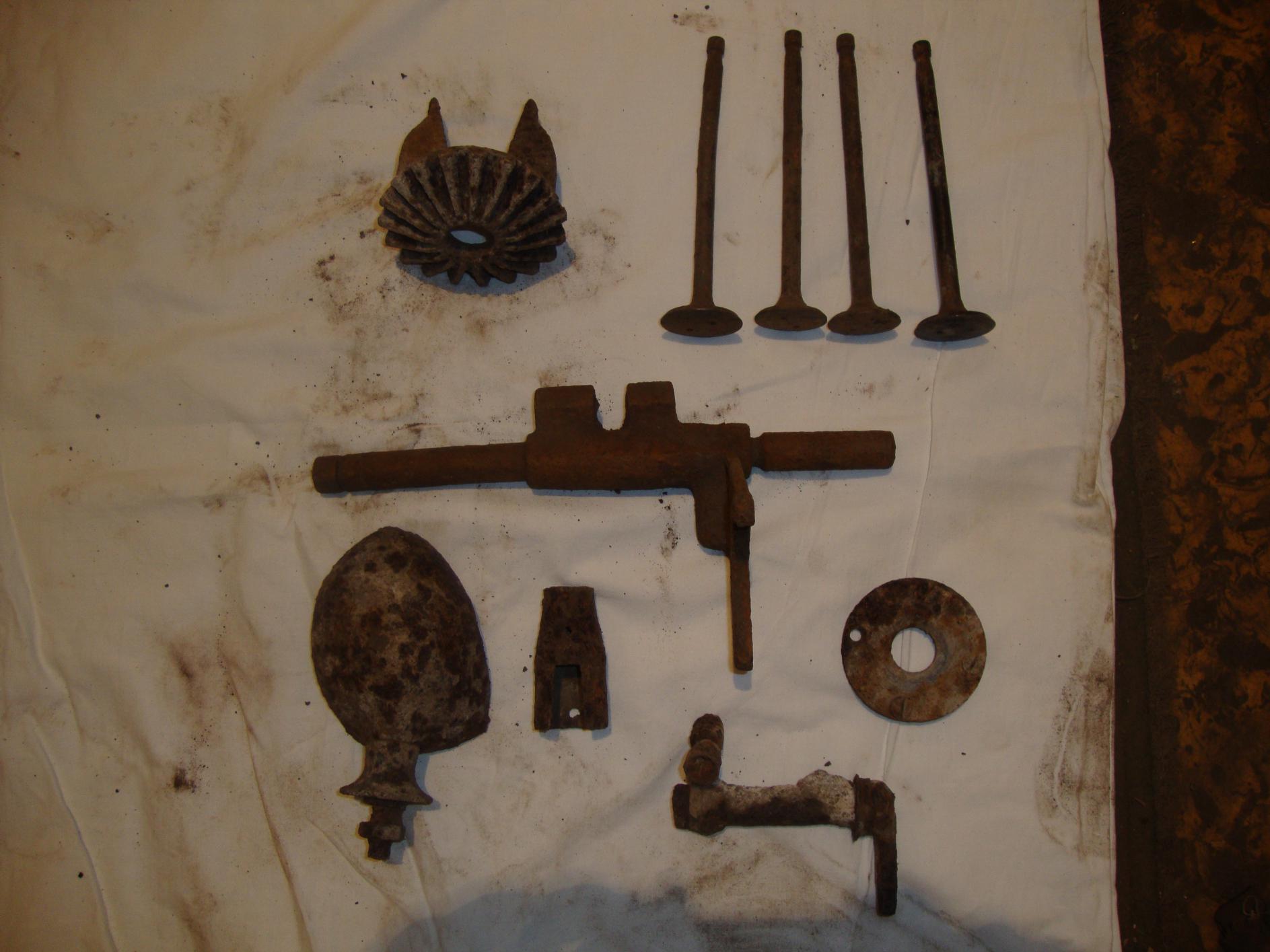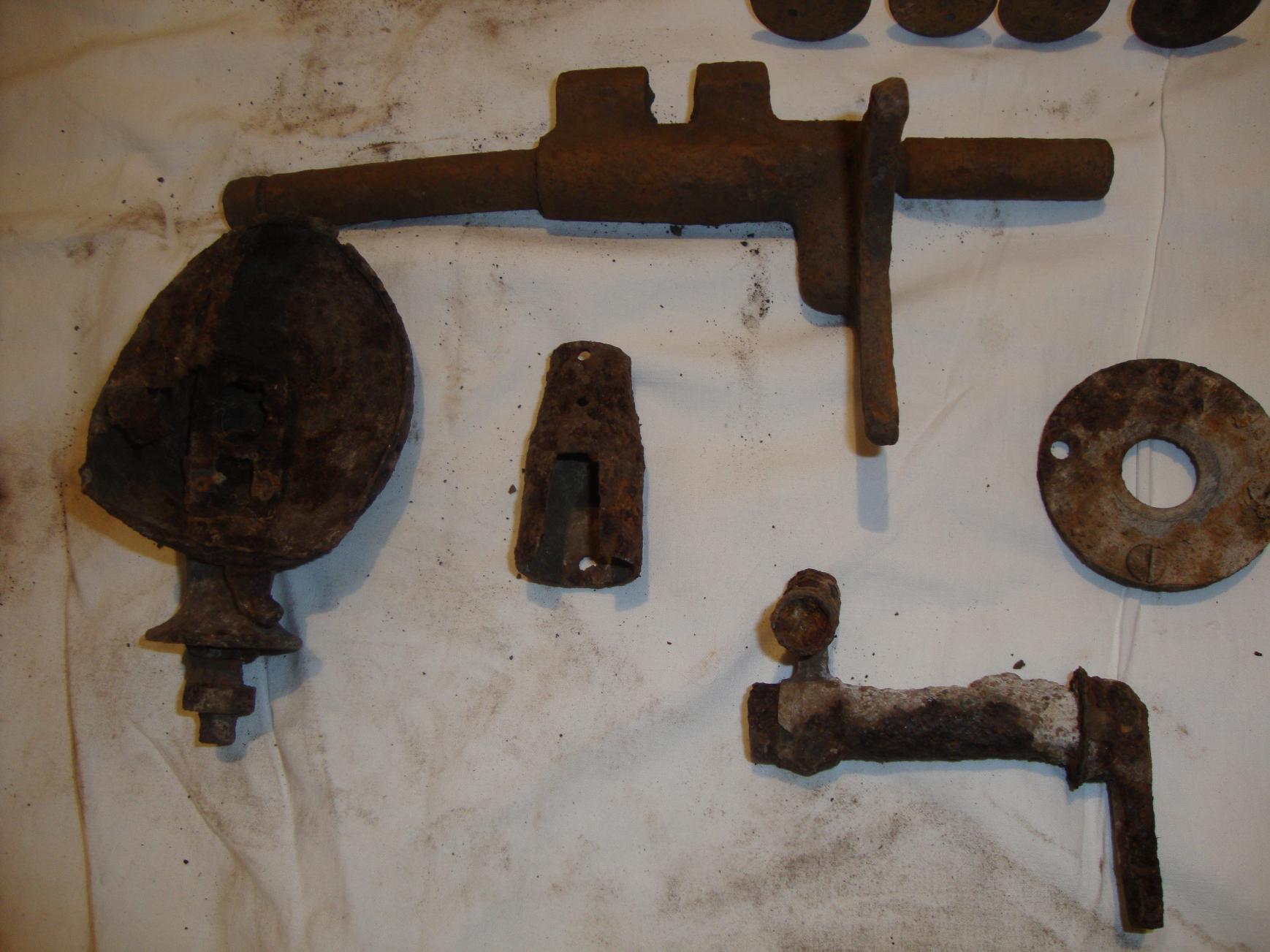 Пост 6 фото слева(верхнее и нижнее)плоский рычаг с крючковидным зацепом-деталь тормозов от мотоцикла Gnome et Rhone AX2 Пост 13 фото слева внизу-ось привода сцепления с возвратными пружинками (тоже от него)