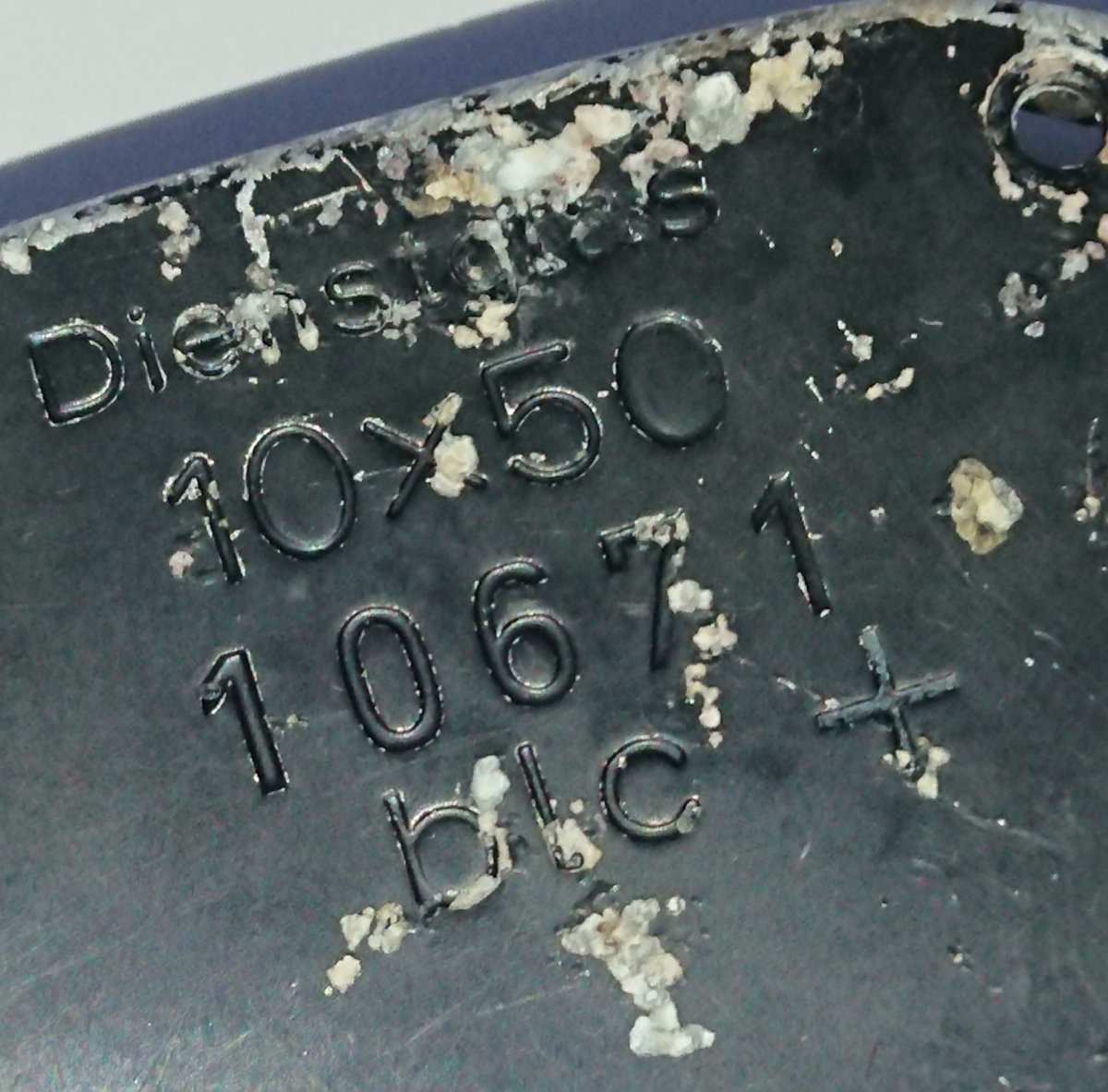 Алфавитный код производителя (blc Carl Zeiss Militärabteilung, Jena, Germany) идёт с 1940 года. Знак "+" указывает тип смазки, использовавшейся в бинокле (смазка для очень низкой температуры (до -40). Заменил знак "О" применявшийся в 1942 году и использовался в 1942-43-44 гг. Логично предположить, что бинокль выпуска конца 1942-го, м.б. начала 1943-го года.