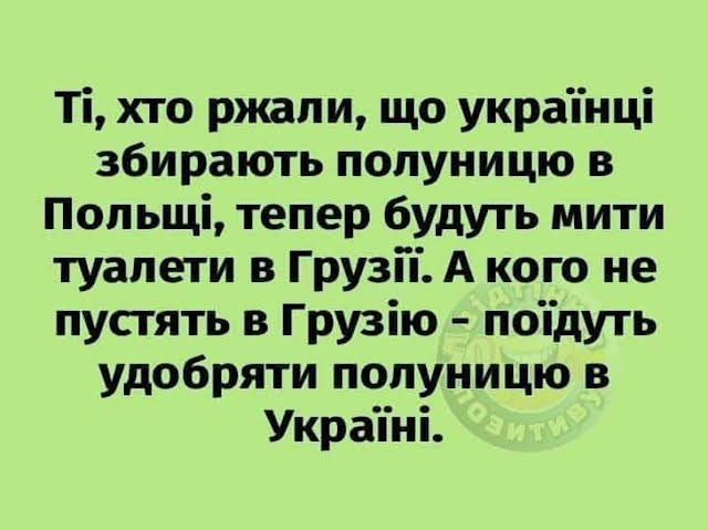 Кацапня едет по Украине, тут голос: -Один Український воін, краще за 10 ваших солдатів. Командир коцапов: -Не понял, а ну 10 солдат туда. Буб, бум, бац, бац. Голос из за бугра: -Я вам так кажу, один Український воін краще ніж 100 ваших солдатів. Командир коцапов: -Не понял, а ну сто человек туда. Бум бум, бац, бац. Голос из за бугра: -Я вам так кажу, один Український воін краще ніж 1000 ваших солдатів. Командир коцапов: -Я не понял, а ну.... Вылазит из за бугра раненый кацап: -Командир, не посылай туда никого, это засада, там их двое.