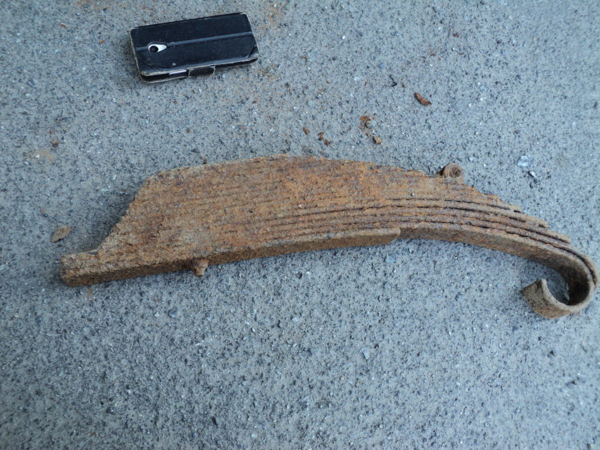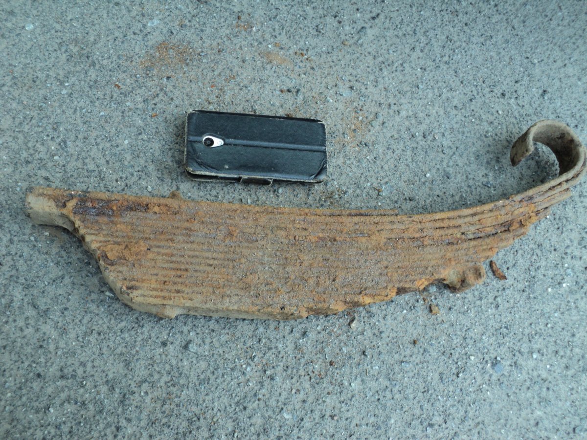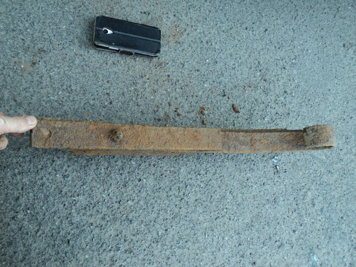 С праздником уважаеміе форумчане. Вчера на месте немецких позиций нашел две вещи. Диск мне кажется послевоенный, а рессора может и по войне. Просьба помощь в идентификации.