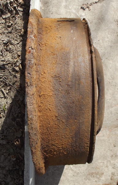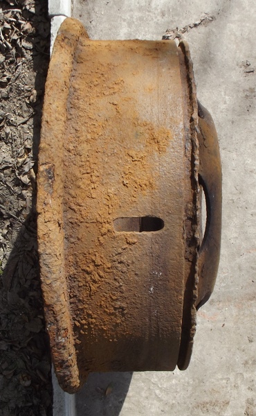 Здравствуйте,помогите пожалуйста определить от какой техники эта деталь.Диаметр с внешней стороны-51 см с внутренней-58 см.диаметр под ступицу-16 см,под шпильку-32 мм.И подскажите он будет востребован или в металл.