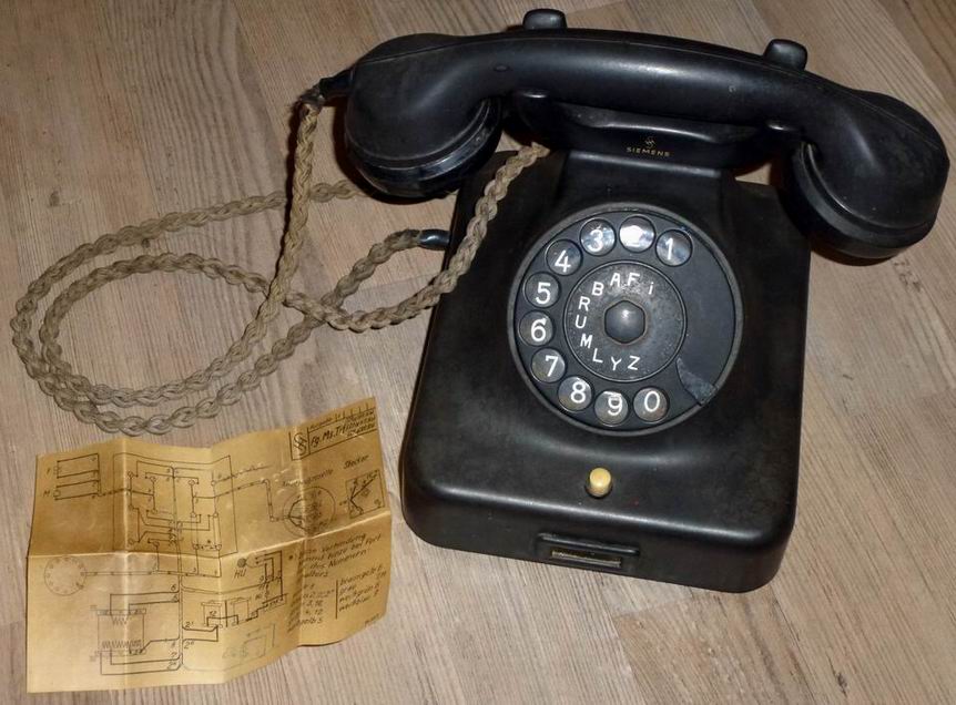 Дисковый телефон Siemens1937 г. Оригинальный немецкий дисковый телефон Siemens 1937 года в хорошем состоянии. Корпус без повреждений, внутри все комплекты на месте. Имеется маркировка «Siemens&Halske»1937. Трубка также имеет маркировки. Также с телефоном была схема-инструкция. 10.000 руб.