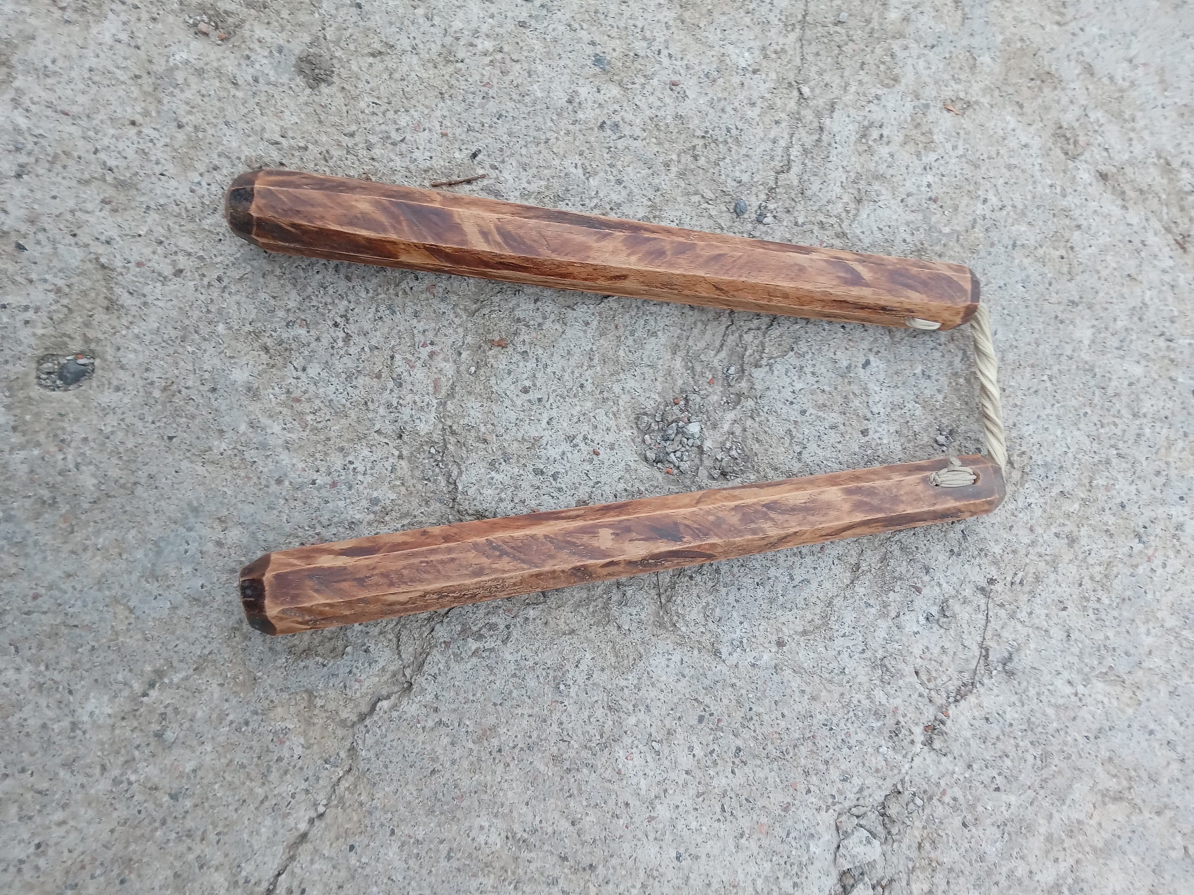 Я с дружбы не видил,а вот велосипедные с намотаной изолентой рукояткой встречал. Да и увечья старались не наносить.Но за нее можно было схлопотать не по детски от ментов. А штакет сломал,попользовался или нет,выбросил и опять правопослушный паренек:D