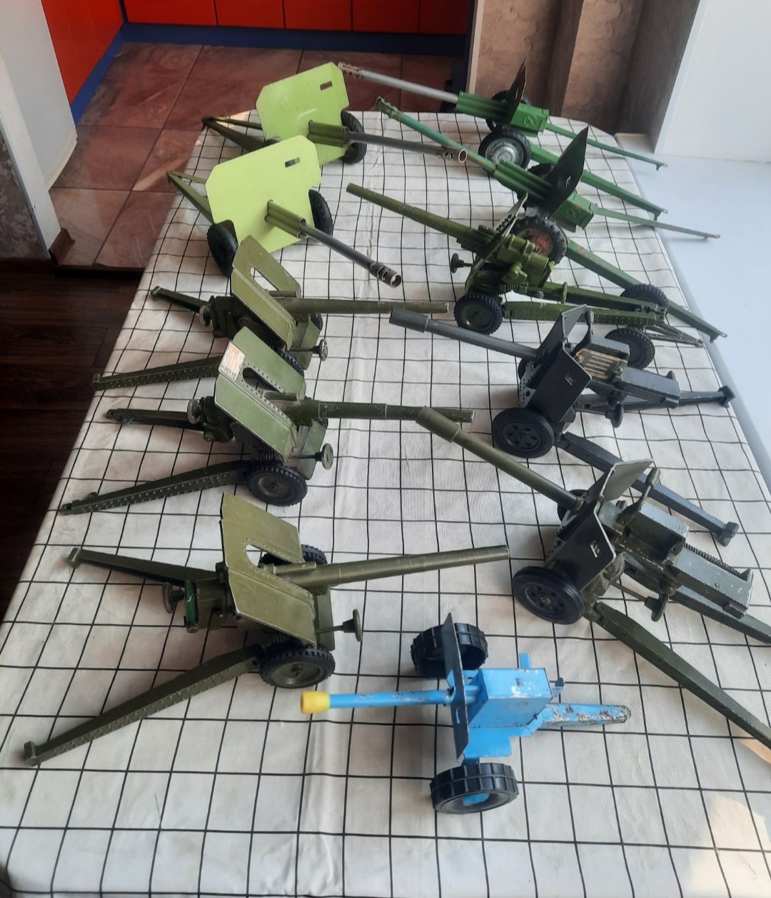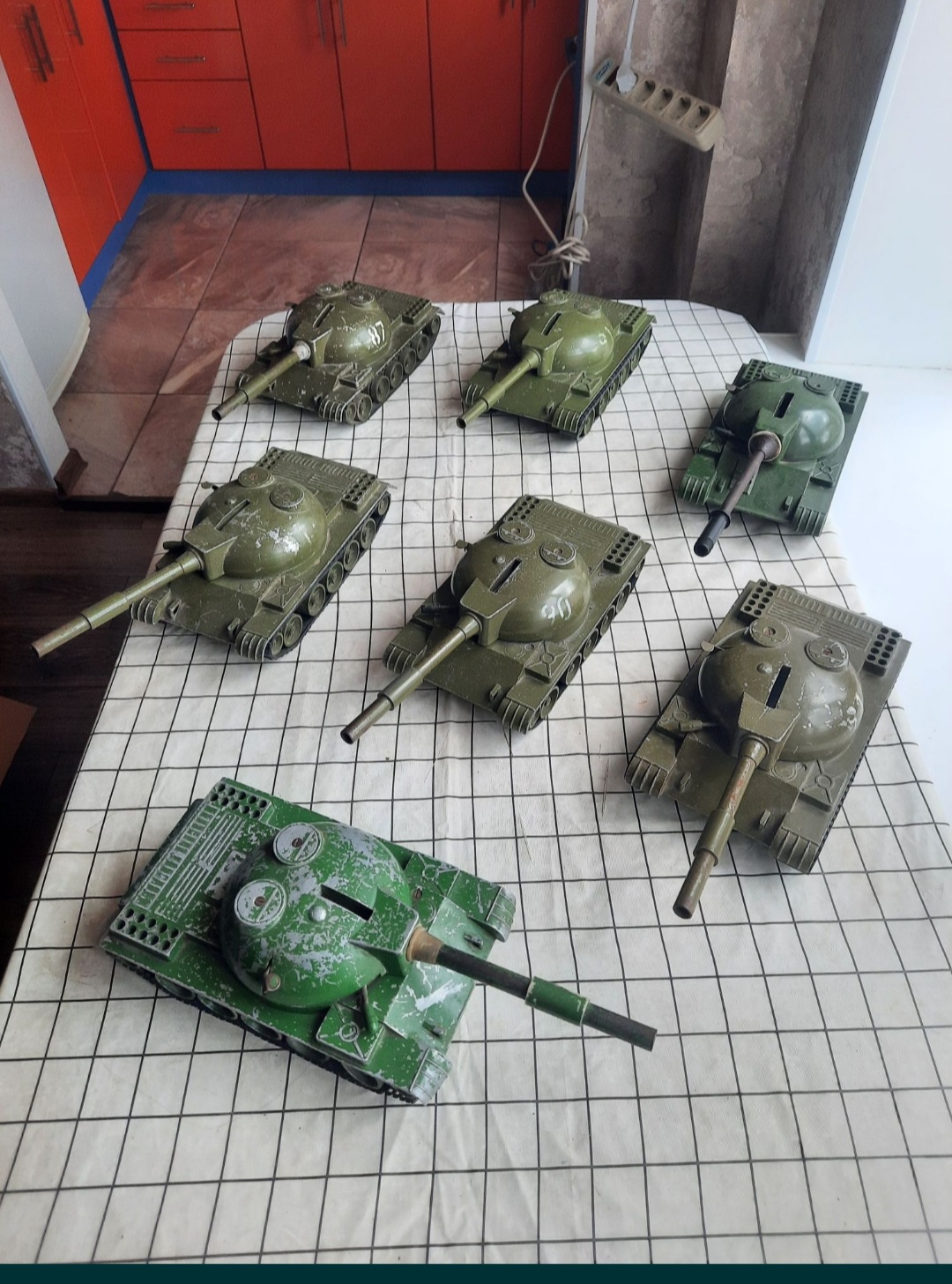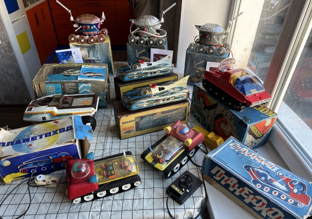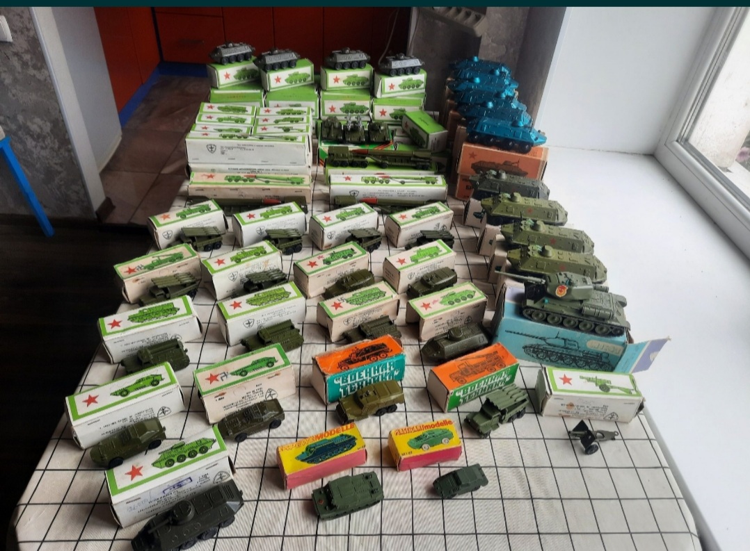 Вездеход был. Тут белые, а у меня жёлтый. Луноход, катер, были и БТР металлические и пушки. Так же танк просрать у которого можно было лишь гусеницы. Но тут такого именно нет на фото. У меня т34 с эмблемой гвардии был. И катер чуть иной. И тягач моделька.