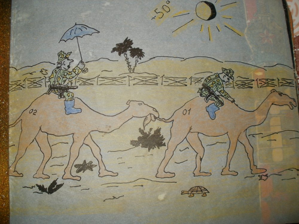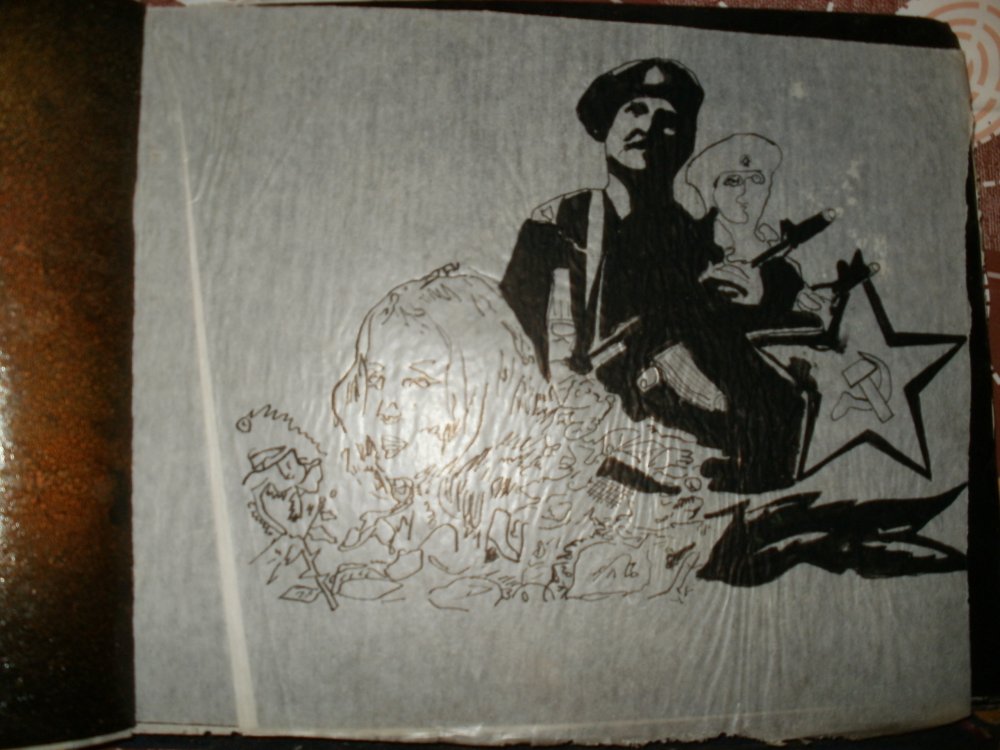 Да уж, камрад Oprishok, задали Вы 23 декабря задачу, я сразу же кинулся искать свой альбом, а его нет! Вся семья на ушах, все кладовки шкафы и прочие места, куда хотя бы теоретически мог он "завалиться". 30.12.2013 - а его нет! Я к матери сходил - нет! И вот 31 декабря я его нашел в кладовке, которую раз несколько обыскал! Чудо. А сфотал только сегодня, со службы пришел и сфотал. Ну, конечно посмотрел кальки (фото я давно вынул, сканировал, ребятам отправлял), Боже, наивные какие, но пафосные! Ну собственно, вот: