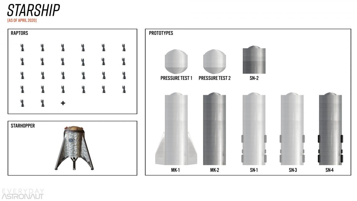 ...продолжение статьи Спойлер: продолжение... В 2019 году SpaceX провела пресс-конференцию перед полноразмерным прототипом Starship в Бока-Чика. Позже мы узнали, что его название было Mk 1, сокращение от Mark One. К этому моменту в конструкции было меньше итераций, и теперь на корабле должно было быть только два нижних крыла, которые действуют как гигантские воздушные тормоза. Это в значительной степени помогает нам ускорить работу над Starship, поскольку большая часть фактических разработок проходила за закрытыми дверями и на условиях SpaceX. Я думаю, что сейчас было бы отличное время, чтобы ознакомиться с ходом реализации этих двух программ. Давайте сложим именно то, что они создали, и посмотрим, сможем ли мы лучше понять их дико уникальную философию дизайна. SLS Progress VS Starship Progress Это тот сегмент, которым я хотел заняться какое-то время. Скептики Starship укажут на все взорванные тестовые прототипы и скажут: «Они даже не могут построить бочку». Скептики SLS говорят: «Прошло десять лет, а ничего не произошло». Давайте посмотрим на все, что они построили. Это будет исчерпывающий, но не полный список абсолютно всего. По крайней мере, мы обозначим основные вехи. Начиная с SLS и Orion, подрядчики закончили и/или протестировали гораздо больше оборудования, чем вы могли подумать. Тесты Artemis 1, Orion и SLS До сих пор мы видели более дюжины Орионов, используемых в Ares 1, различных тестах САС, макетов и тестовых установок. В 2014 году был проведен в основном полнофункциональный полет полноценного Ориона на вершине Delta IV Heavy для EFT-1. В 2019 году в Космическом центре Маршалла даже проводилось испытание полноразмерного водородного бака SLS. Испытание длилось более пяти часов при 260 процентах структурной прочности. Все оборудование для первого полного теста SLS и Orion в миссии Artemis 1 в основном готово к окончательной сборке. Центральный блок находится на испытательном стенде, закончил весь комплекс тестов Green Run и ожидает транспортировки. Произошло объединение пяти сегментов каждого SRB. Система прерывания полета готова. Космический корабль Орион завершил все свои испытания. Он вернулся в Космический центр Кеннеди в ожидании предстоящего запуска вокруг Луны! Вторая ступень готова уже много лет. Сервисный модуль корабля, поставляемый ESA, готов. Буквально оборудование Artemis 1 готово! Осталось только осуществить транспортировку, а затем интеграцию. Имеется 16 двигателей RS-25D. 14 из 16 двигателей ранее использовались в миссиях Шаттла. Сегментов твердотопливных ракетных ускорителей достаточно, чтобы сделать 16 ускорителей на восемь полетов. Даже 4 RL-10 готовы к использованию. Artemis 2, 3. Оборудование Теперь, когда налажены производственные линии и технологии, части для Artemis 2 собираются вместе. Сюда входят бак для кислорода, бак для водорода, промежуточный межбаковый сегмент, носовая юбка, секция двигателей на основной ступени. Резервуар высокого давления для Ориона, его сервисный модуль, тепловой экран, башня САС и другое оборудование уже на месте. И, как уже упоминалось, RS-25 и бустерные сегменты тоже в комплекте. Это еще не все, оборудование Artemis 3 тоже уже готовится. Сюда входят части корабля, части служебного модуля, водородный бак SLS, двигатели и твердотопливные ускорители. Итак, вы можете видеть, что SLS и Orion действительно многого достигли за последнее десятилетие. Даже если учесть более длительную временную 