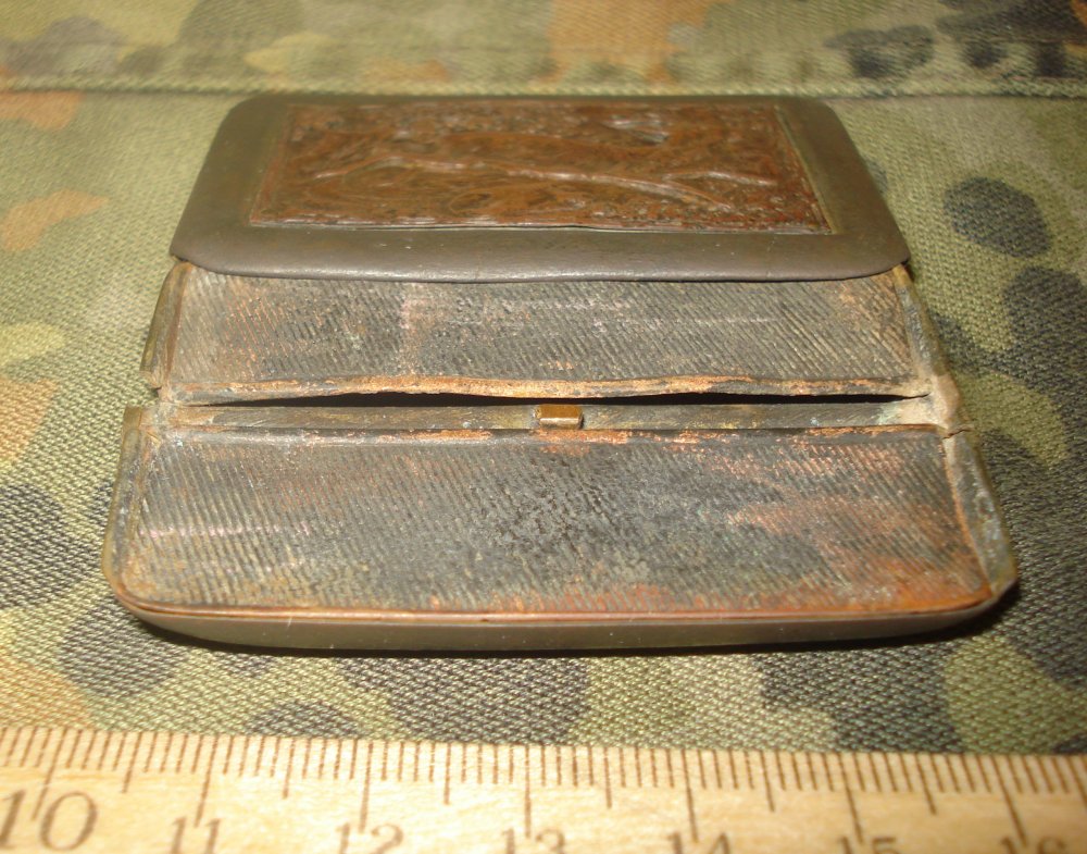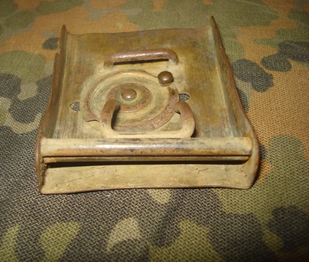 Ось така штука трапилась. Знайдено на позиціях по ПСВ. Метал латунь? кришка зсувається знизу вверх, в середині два відділи з кришками. За словами знайомого "скаутська пряжка з італії післявійна". Може в когось якісь думки будуть.