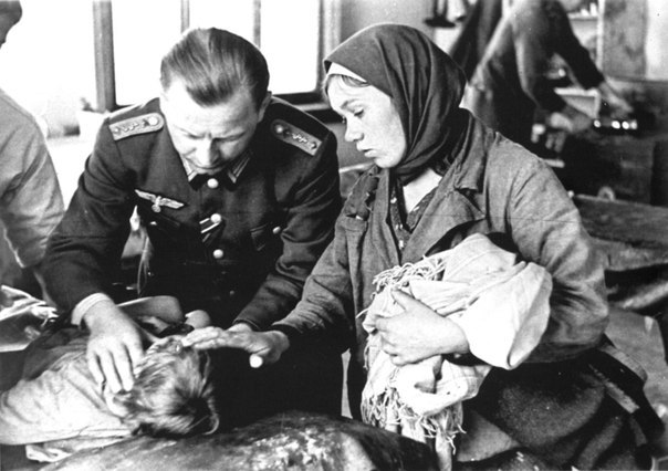 В доме моей прабабки стояли немцы, а наши перешли в сарай. Старшие (мои бабушки) рассказывали, что никаких притеснений, издевательств и приставаний не было. Сахаром и шоколадом делились регулярно. Один самый добрый показывал фото детей и говорил, что война "пльохо". Остальные были угрюмы и не разговочивые. Когда в один из дней все сорвались начали спешно уходить из села, наши бабули на дороге соорудили "капканы" из граблей и серпов. Немцы разобрали, а детям сказали "ай-яяЙ". Не тронули.