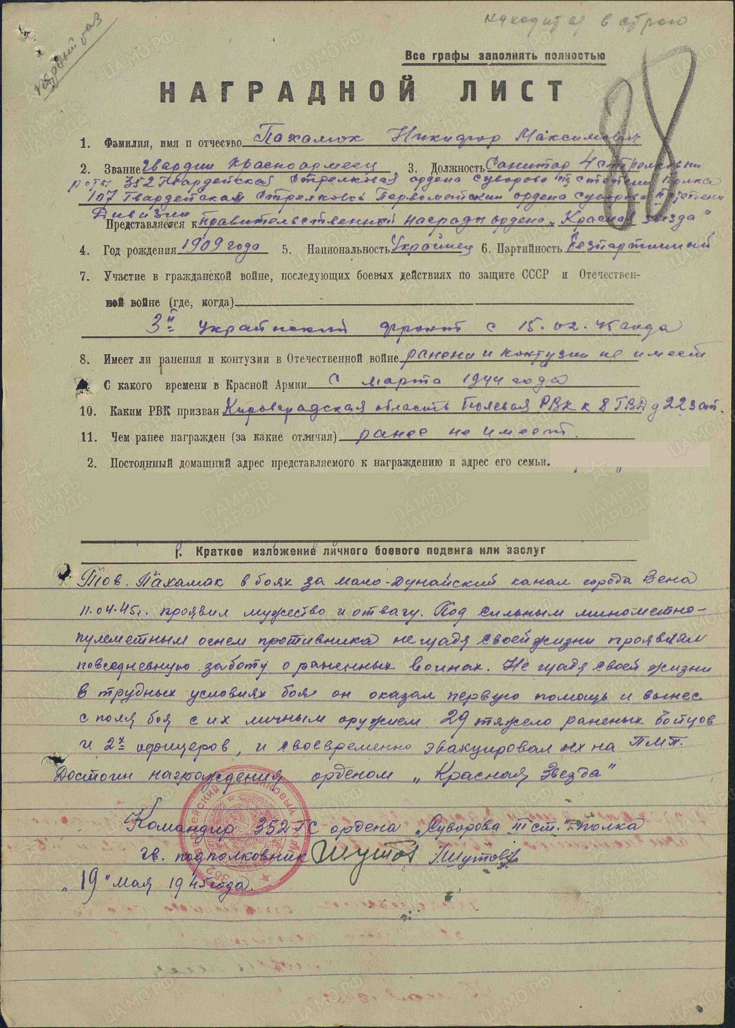 Добра усім.Допоможить прочитати листок з красноармейской книжки.