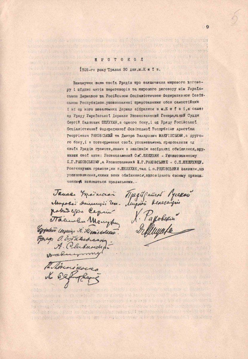 Протокол мирної угоди між Українською Державою та РСФСР, який московити, як завжди, порушили одразу. 30 травня 1918 року.