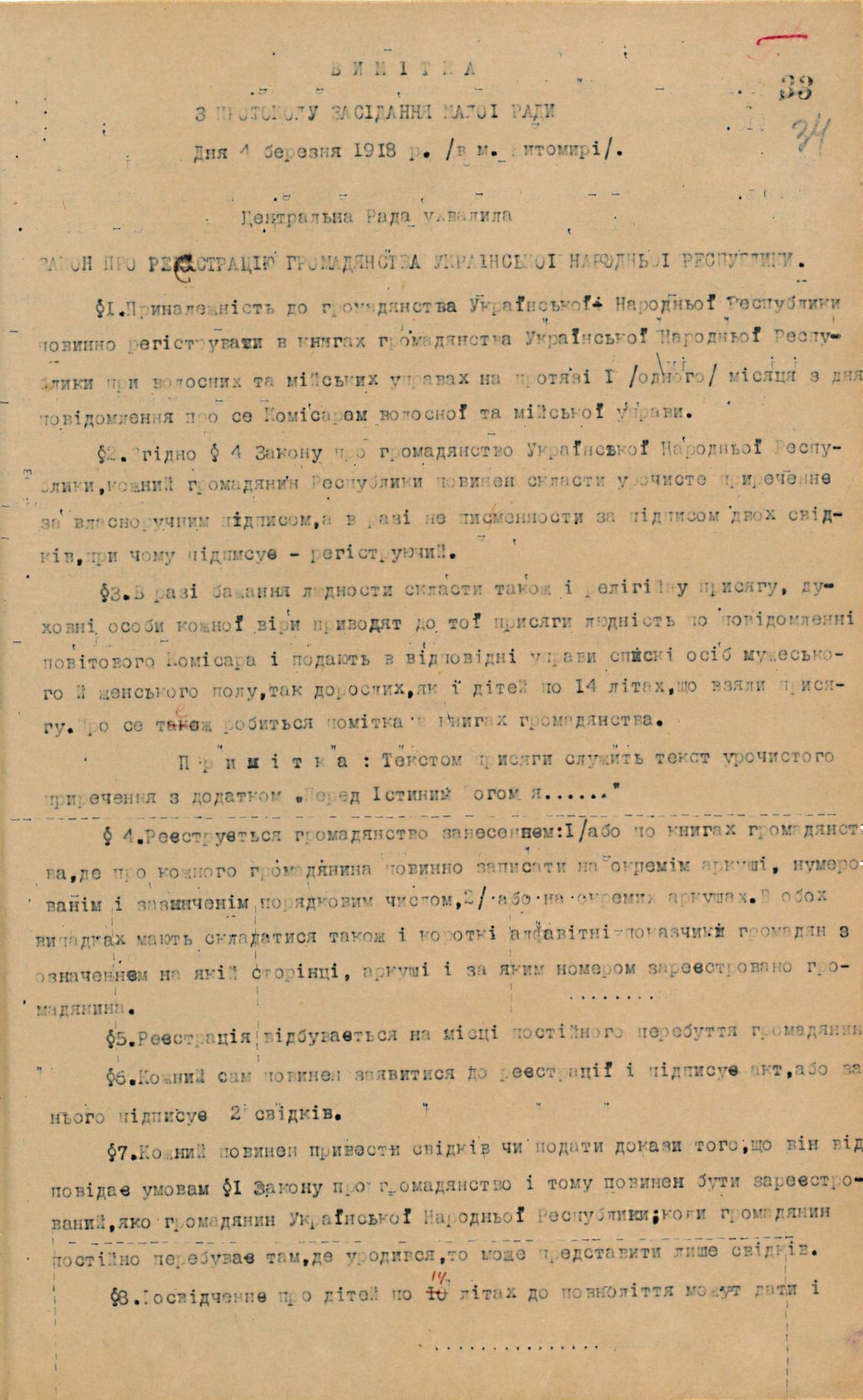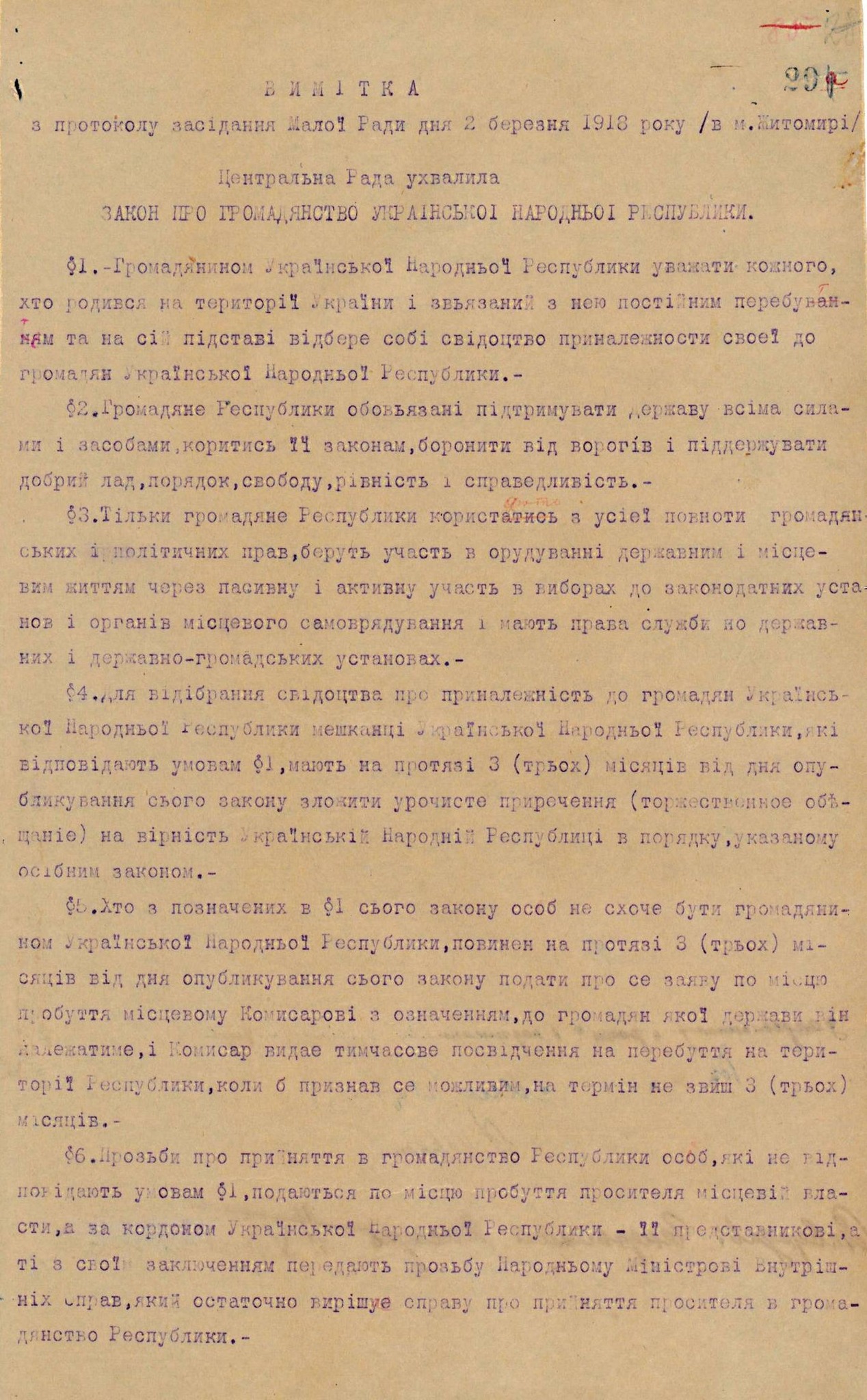 1. Закон про громадянство Української Народної Республіки (з протоколу Малої Ради). 2 березня 1918р. 2. Закон про громадянство Української Народної Республіки (з протоколу Малої Ради). 2 березня 1918р. 3. Закон про реєстрацію громадянства Української Народної Республіки (з протоколу засідання Малої Ради). 4 березня 1918р. 4. Закон про реєстрацію громадянства Української Народної Республіки (з протоколу засідання Малої Ради). 4 березня 1918р. 5. Закон про реєстрацію громадянства Української Народної Республіки (з протоколу засідання Малої Ради). 4 березня 1918р. 6. Закон про реєстрацію громадянства Української Народної Республіки (з протоколу засідання Малої Ради). 4 березня 1918р. 7. Штати апеляційного суду, ухвалені Українською Центральною Радою. 24 березня 1918р. 8. Штати апеляційного суду, ухвалені Українською Центральною Радою. 24 березня 1918р. 9. Штати Українського Генерального суду, ухвалені Українською Центральною Радою. 24 березня 1918р. 10. Штати Українського Генерального суду, ухвалені Українською Центральною Радою. 24 березня 1918р.