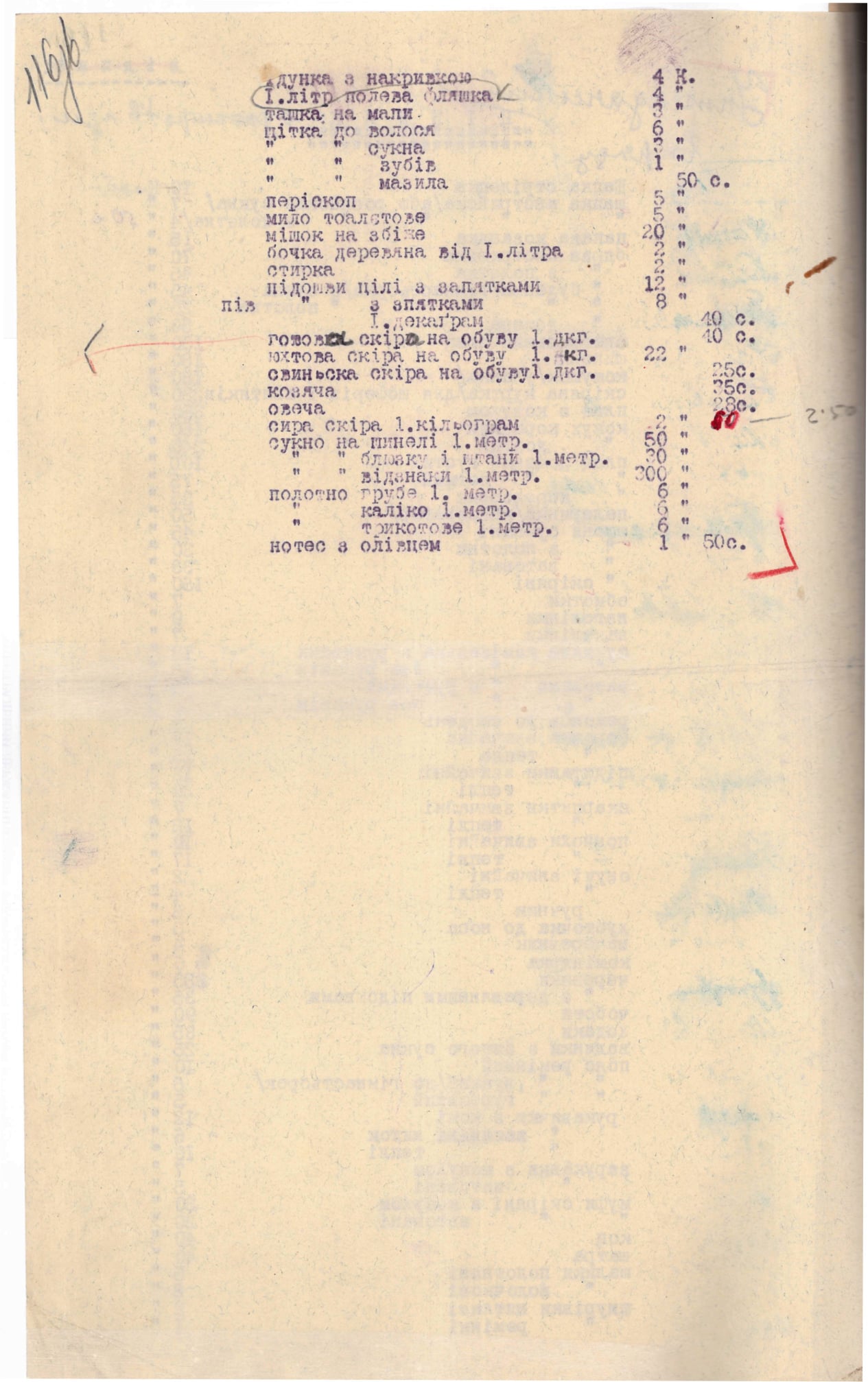 Інтендантський цінник одностроїв і ін. виряду. Начальна команда Української Галицької армії. Березень 1919р.