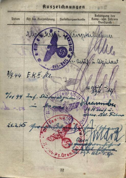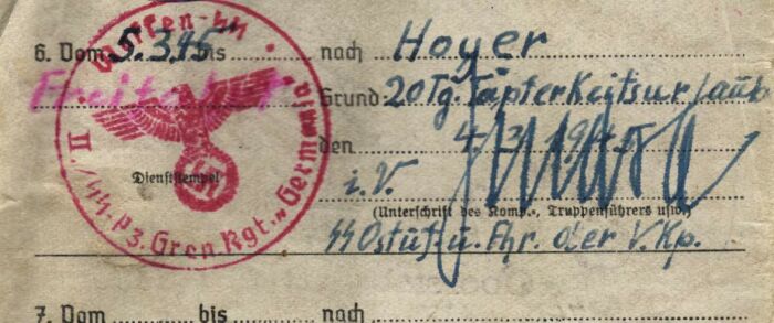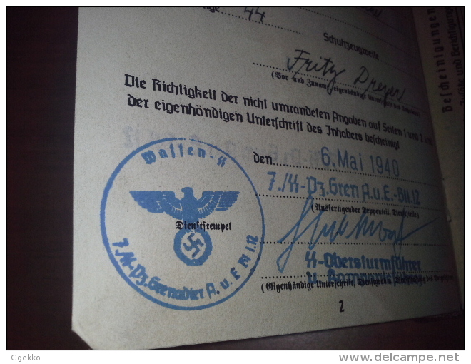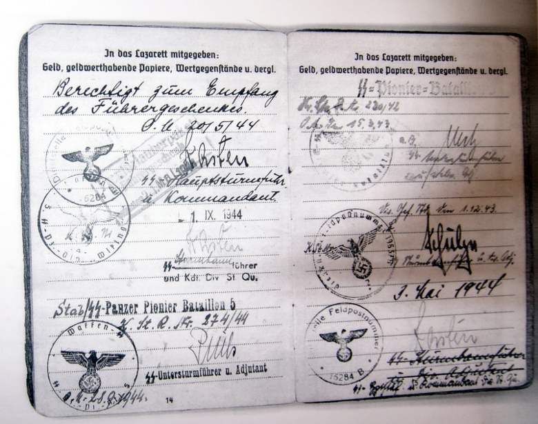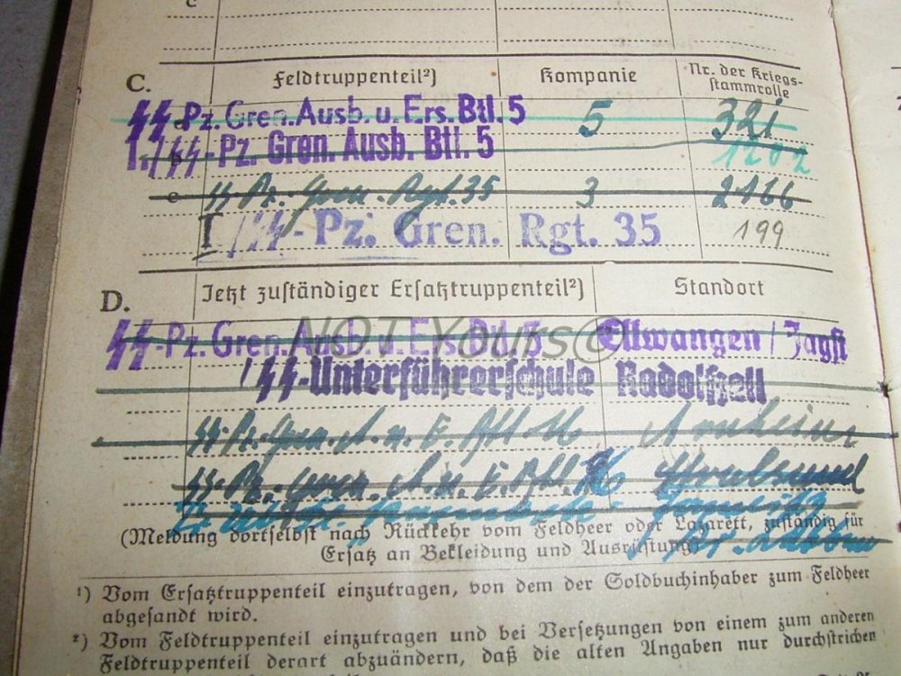 Свежий зольдбух - 5 противотанковый батальон дивизии Викинг... Очень хорошо видна нетипичная для ВСС дивизионная печать Викингов...