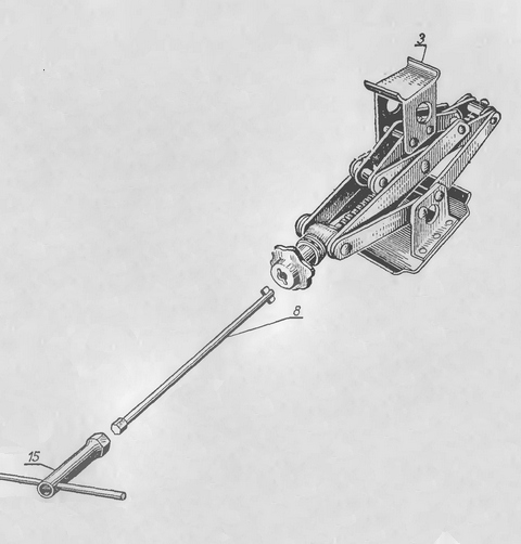 Можливо це і є, домкрат від М-400/401, також схожий як від Kadett/Olympia, але в будь якому випадку з "модернізованою" ручкою від лещат.