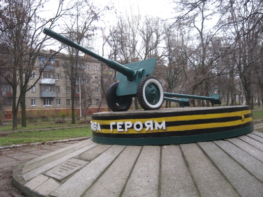 Памятник Пушка Открыт 9 мая 1974 — Пушка от воинов-освободителей Новоград-Волынского танкового полка — ул. Ленина и Вознесенского, архитектор В. Е. Роговец (ГАП Краматорского отдела «Донбассгражданпроекта»)