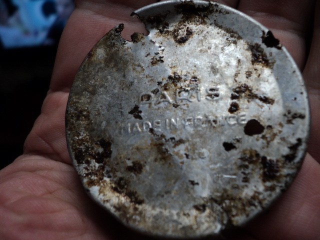 На немецких позициях донце от круглой коробочки с надписями PARIS и сделано во Франции (как-будто может и не во Франции). От чего может быть? И клепка серого цвета современная или война?
