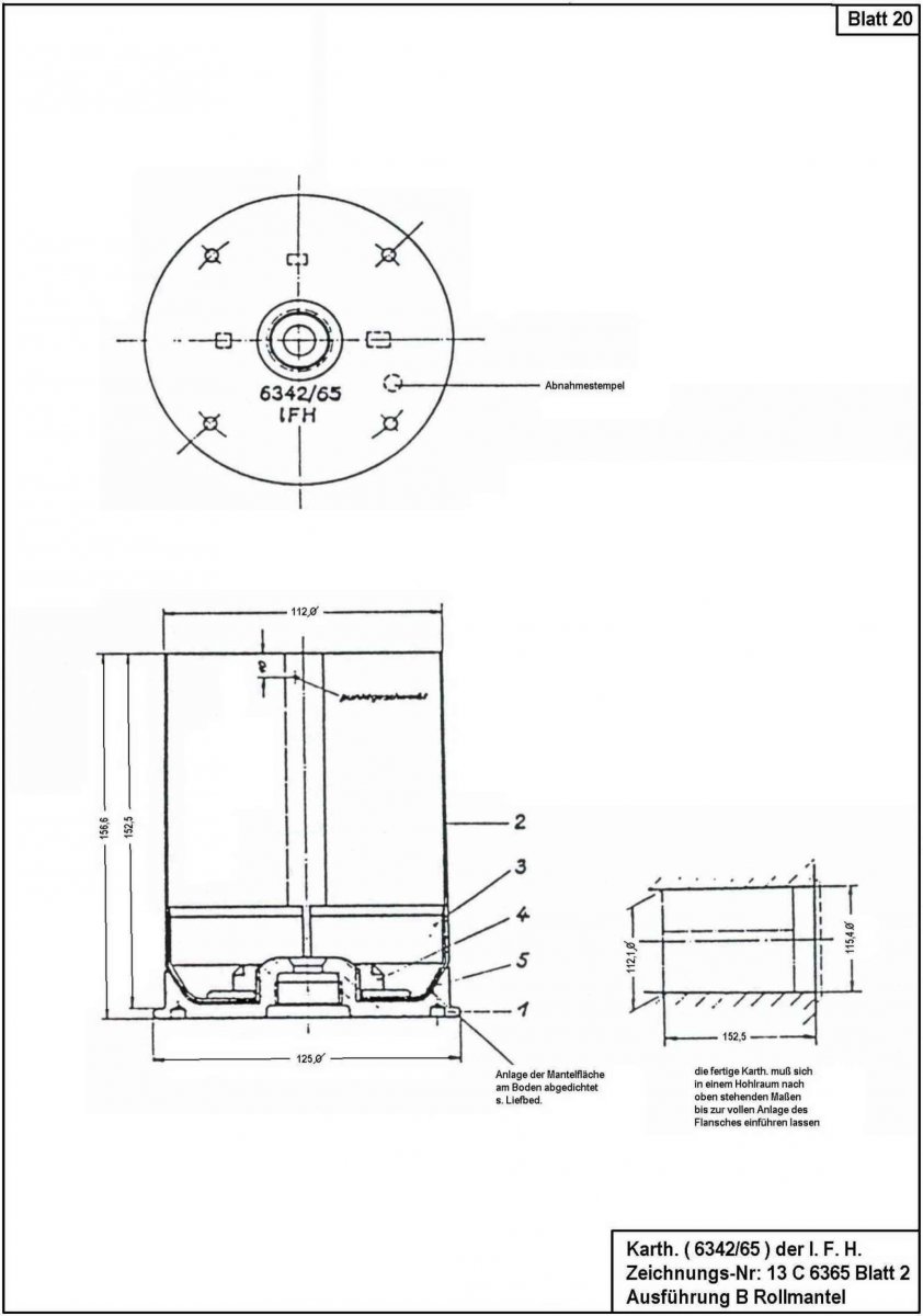 Составная гильза к 105-мм легкой полевой гаубице, обр. 18г. [10.5cm leFH.18]. Гильза стальная свёртная, изготовленная методом точечной сварки.
