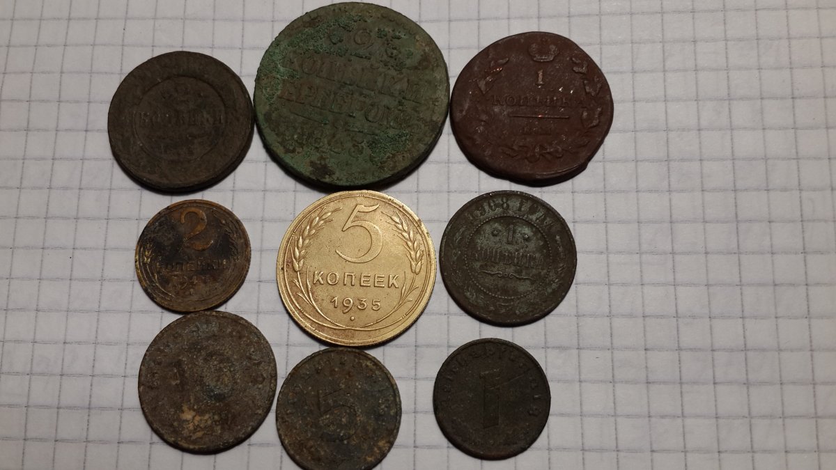 За пару последних выездов наиболее интересные монеты. Особенно порадовал пятак 1935 г. , но увы новый герб. Ну ни чё , "будем искать"!
